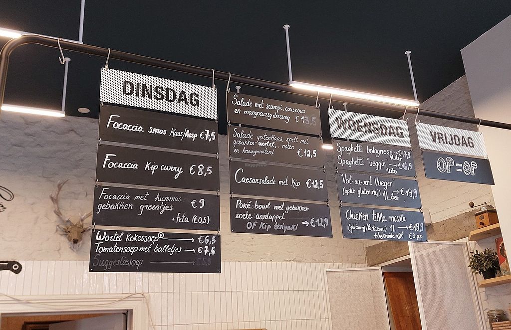 Serves meat, vegan options available. Serves fresh house-made food (take-away) in a bar. The menu changes every month. Has vegan soup, focaccia, pasta and meals. Open Tue-Sat 11:00-18:00. Closed Sun-Mon.