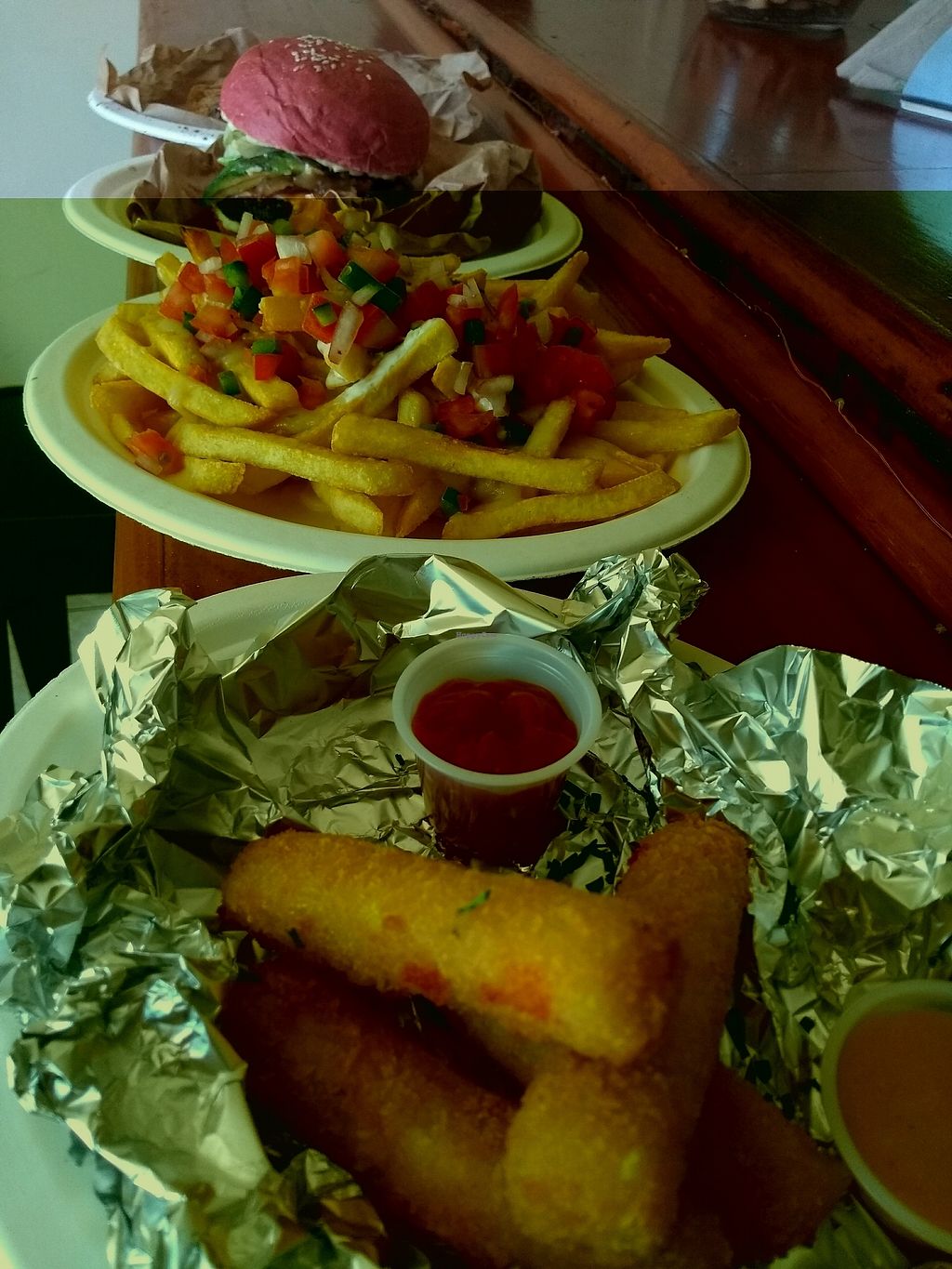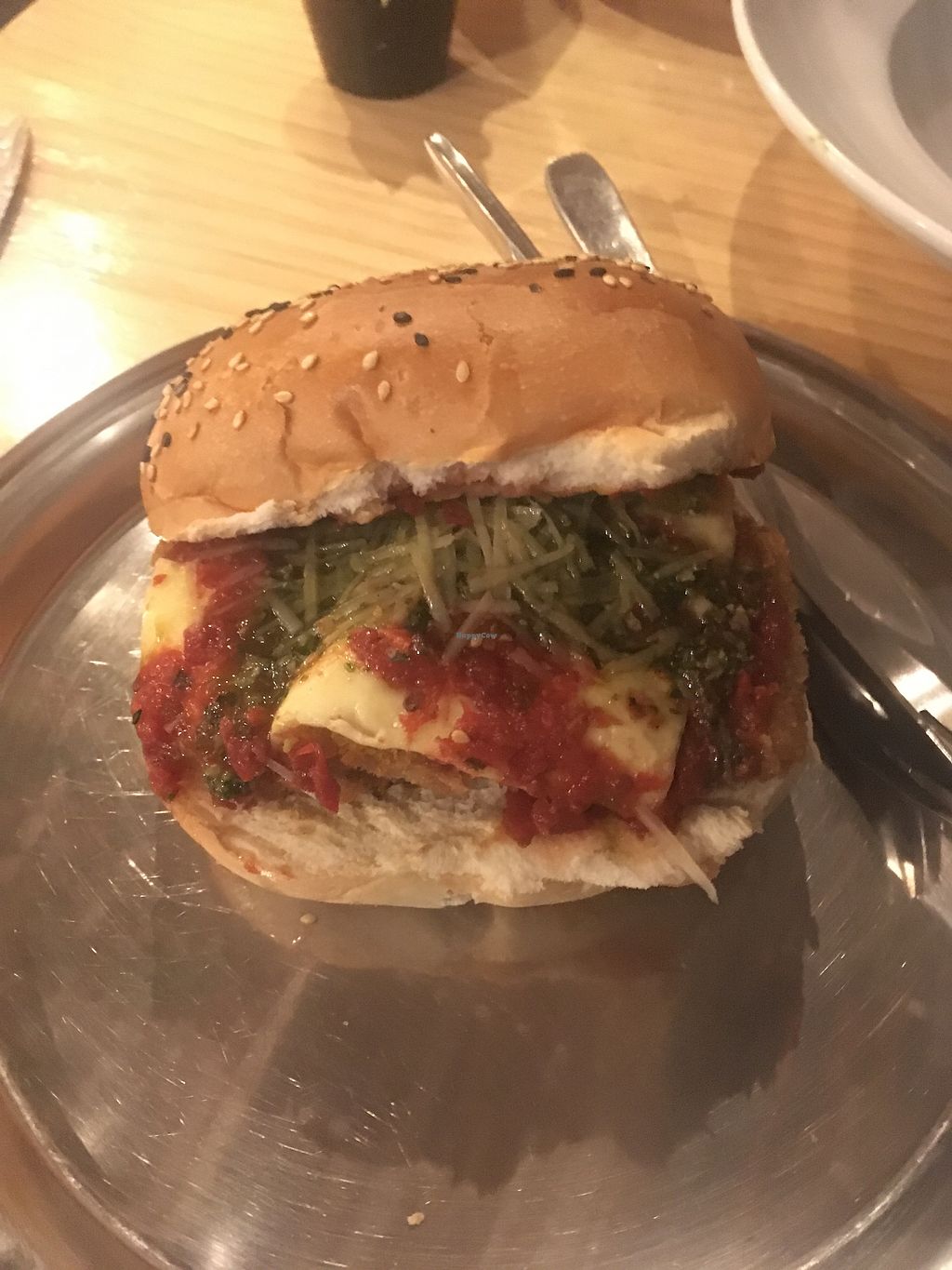 Alyssa. Tofu apanado, salsa marinara, mozarella y parmesano vegan, pes…