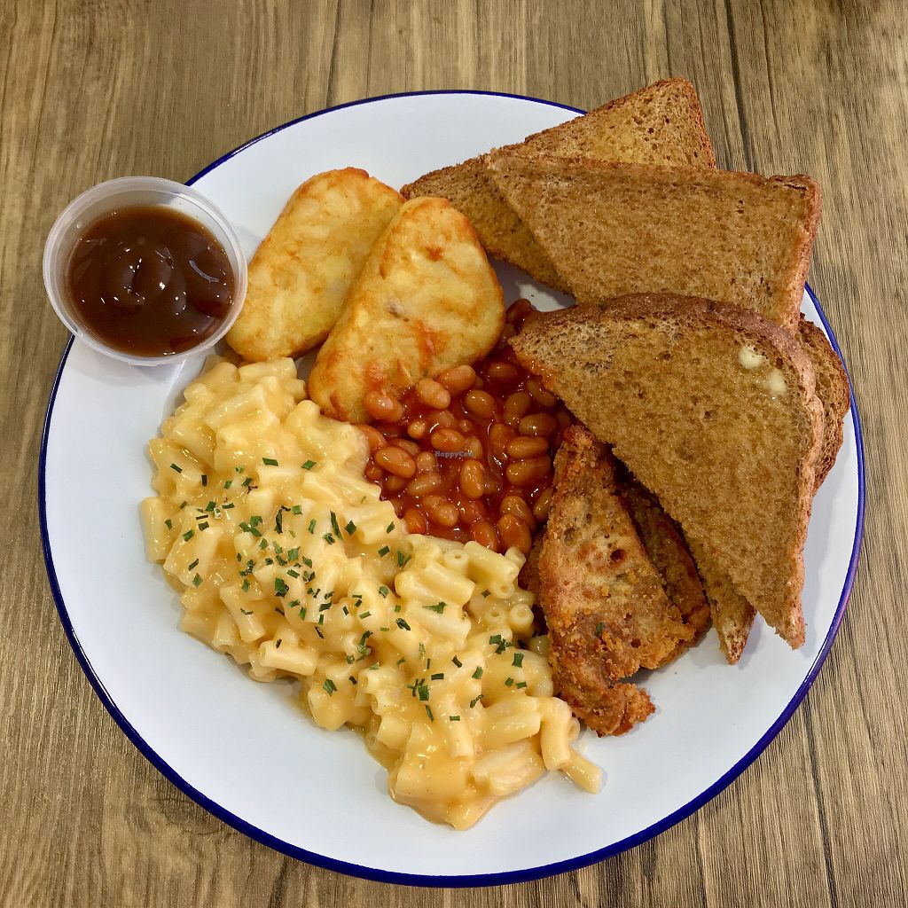 All day breakfasts: mac & cheese, hash browns, baked beans, seitan and…