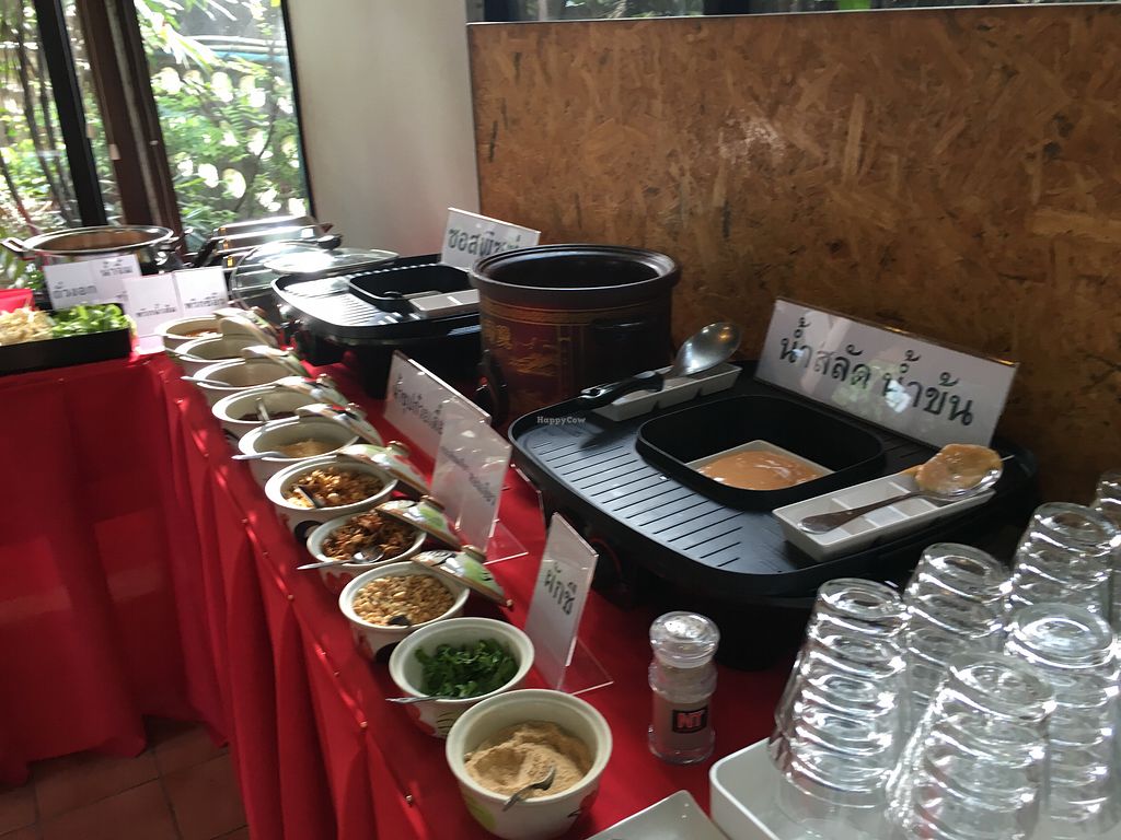 First thing to note about this hidden gem is that the location has changed to inside the Baan Kumwan boutique hotel. The new address is 96 Suandok rd., Suandok, Muang, Lampang, Lampang, 52100, Thailand. Opening hours are 11am till 8pm Monday - Saturday and they offer an all you can eat buffet for 99baht per person, All vegan. The owners and staff are so welcoming and we enjoyed the conversation. The food is delicious and a wide variety. Definitely worth a visit if you are in Lampang!