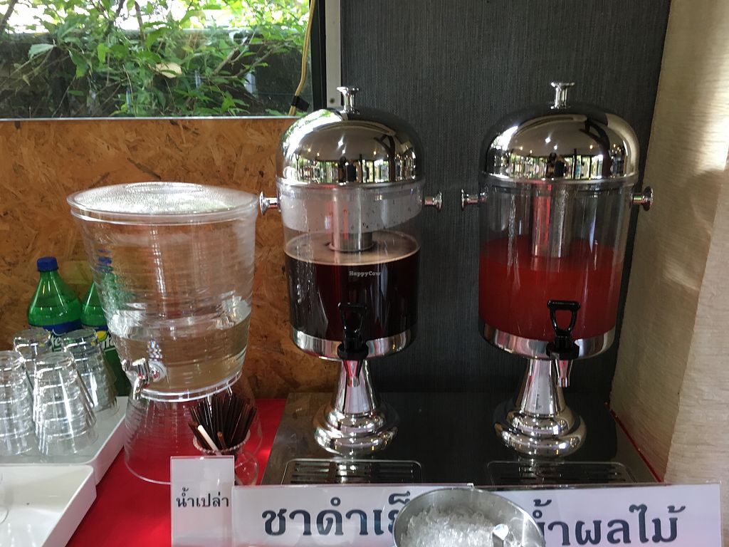This is a nice restaurant, not a typical Thai style jay restaurant. It has an air-conditioned inside room, some garden seating and a coffee and smoothie bar. There is a menu to order from and all savoury dishes appear to be vegan. They have Thai food such as fried holy basil, fried rice, soups, etc. They also have a few western dishes such as a burger and vegan pizza but we didn't try them. They also have a large ice-cream selection but it was disappointing that only three flavours are vegan and all the posh looking sundae combos they have are made with dairy.