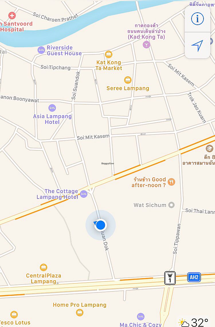 This is a must visit in Lampang if you're vegetarian/vegan, please make sure you don't miss this place! Hong (not sure if I spelled right) is an amazing chef, so creative and so fun to talk to. Her entrepreneurial spirit will wow you away, just ask her about her business! If you're going to order a few dishes, it is highly recommended that you make a reservation with her 1+ day(s) ahead, because — as the name suggests — her main business model is food delivery, she takes care of the daily meals of dozens upon dozens of clients (cooking & delivery), so their kitchen may be busy when you arrive. For more fun, ask her to cook something off the menu, her creativity will be sure to inspire you :)