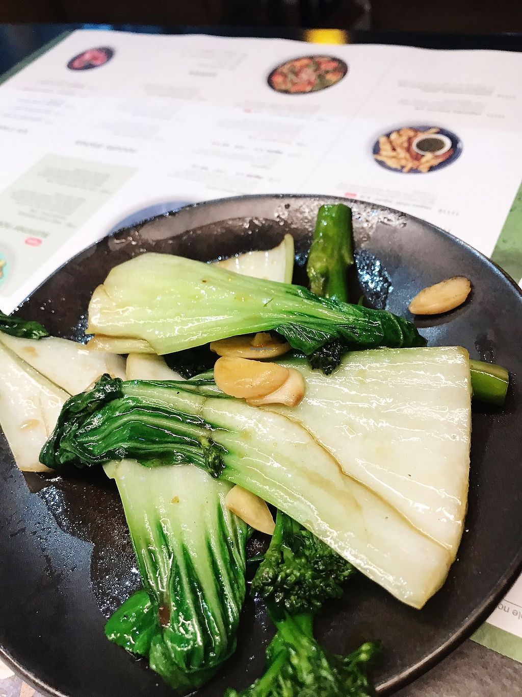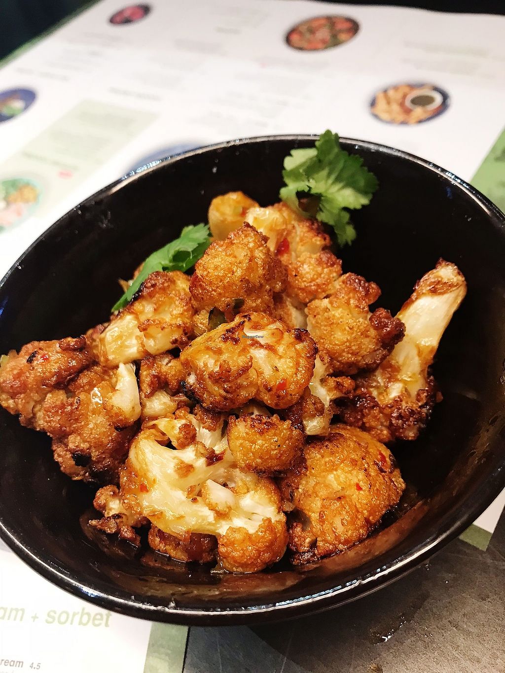 Yasai itame consists of rice noodles in a spicy green coconut and lemo…