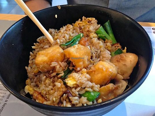 yasai cha han donburi – stir-fried brown rice with tofu and vegetables…