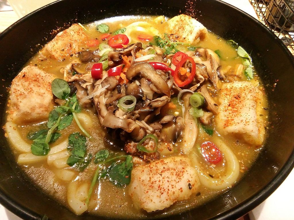 The Vegatsu, katsu curry with breaded seitan and sticky rice. Sooo goo…