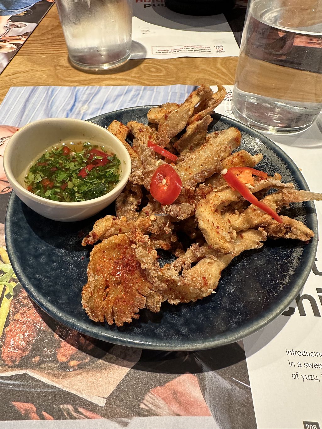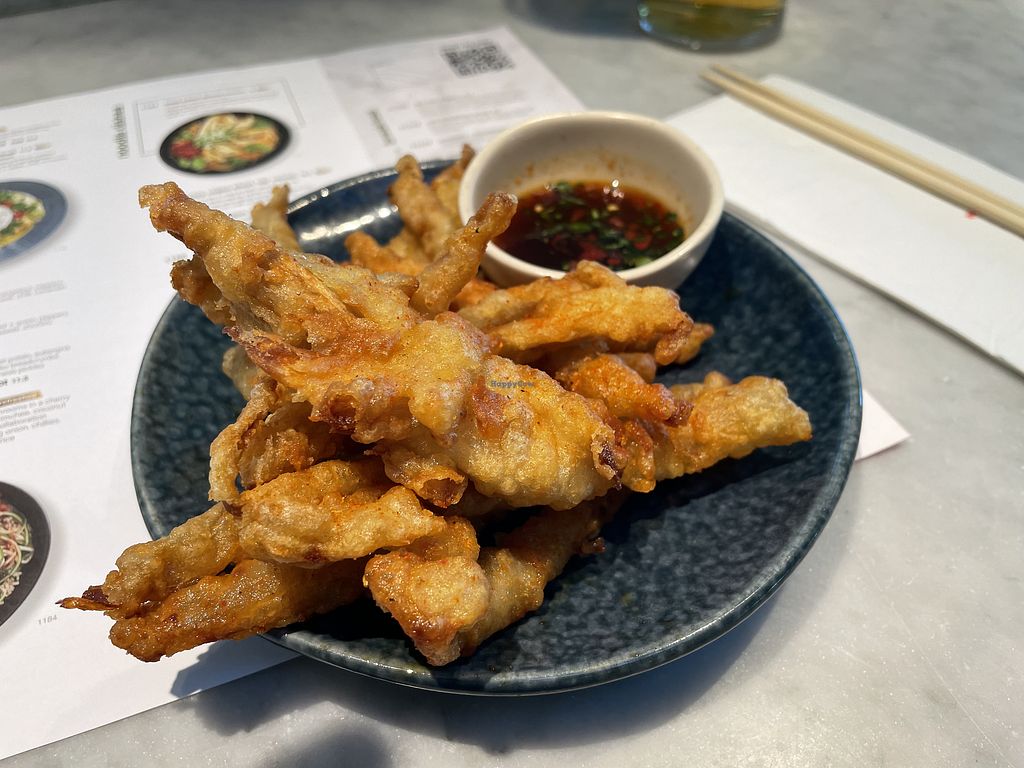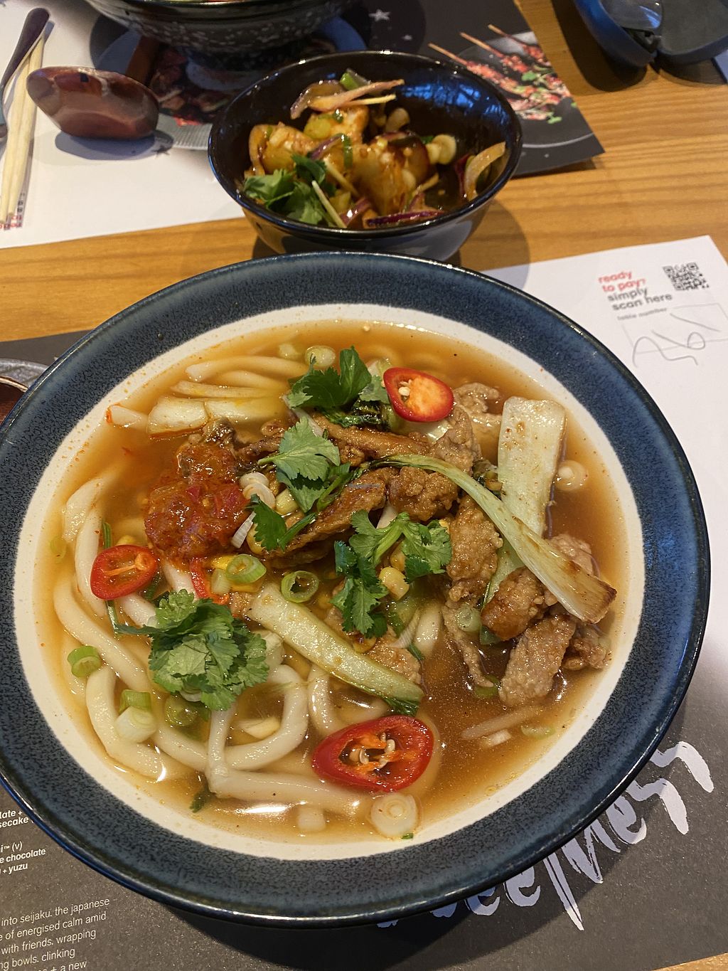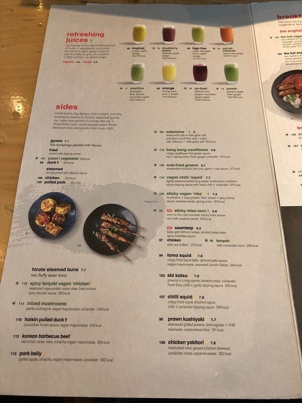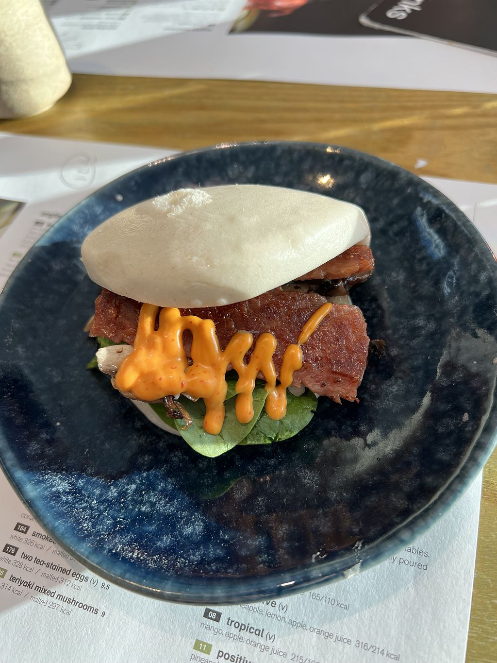 As good as all Wagamama’s for vegans - always enjoy them. Had the ‘squid’, sticky ‘ribs’ and ‘chicken’ steamed buns. Reviewed the squid and ribs before - very nice. First time having the chicken buns, which are nice, but for me not as nice as the mushroom steamed buns. As always, great selection and this particular one has a good view of the BA ponds taking off.