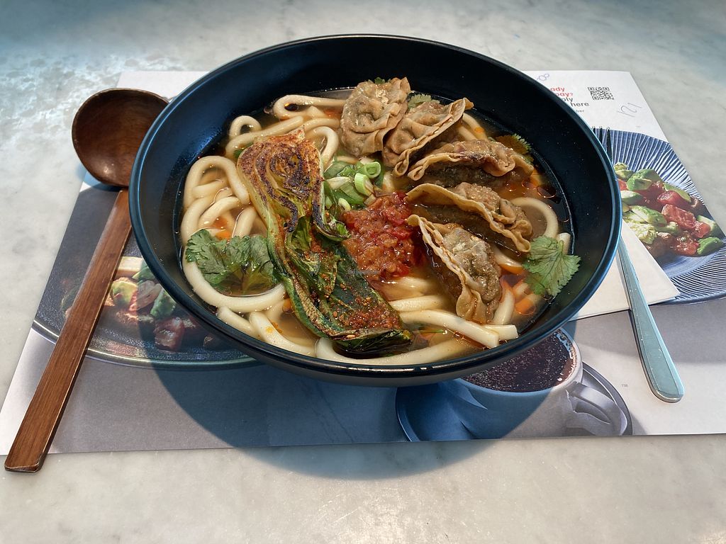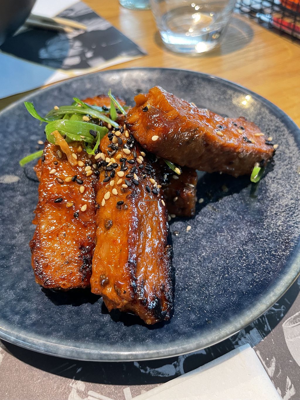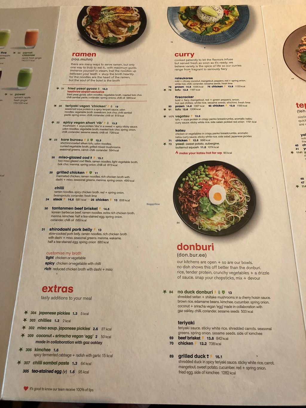 The queue for the restaurant was long but moved extremely quick. Many vegan options all clearly marked on the menu. I ordered the vegan ribs and vegan ramen. Everything was good. Definitely a solid option at LHR.