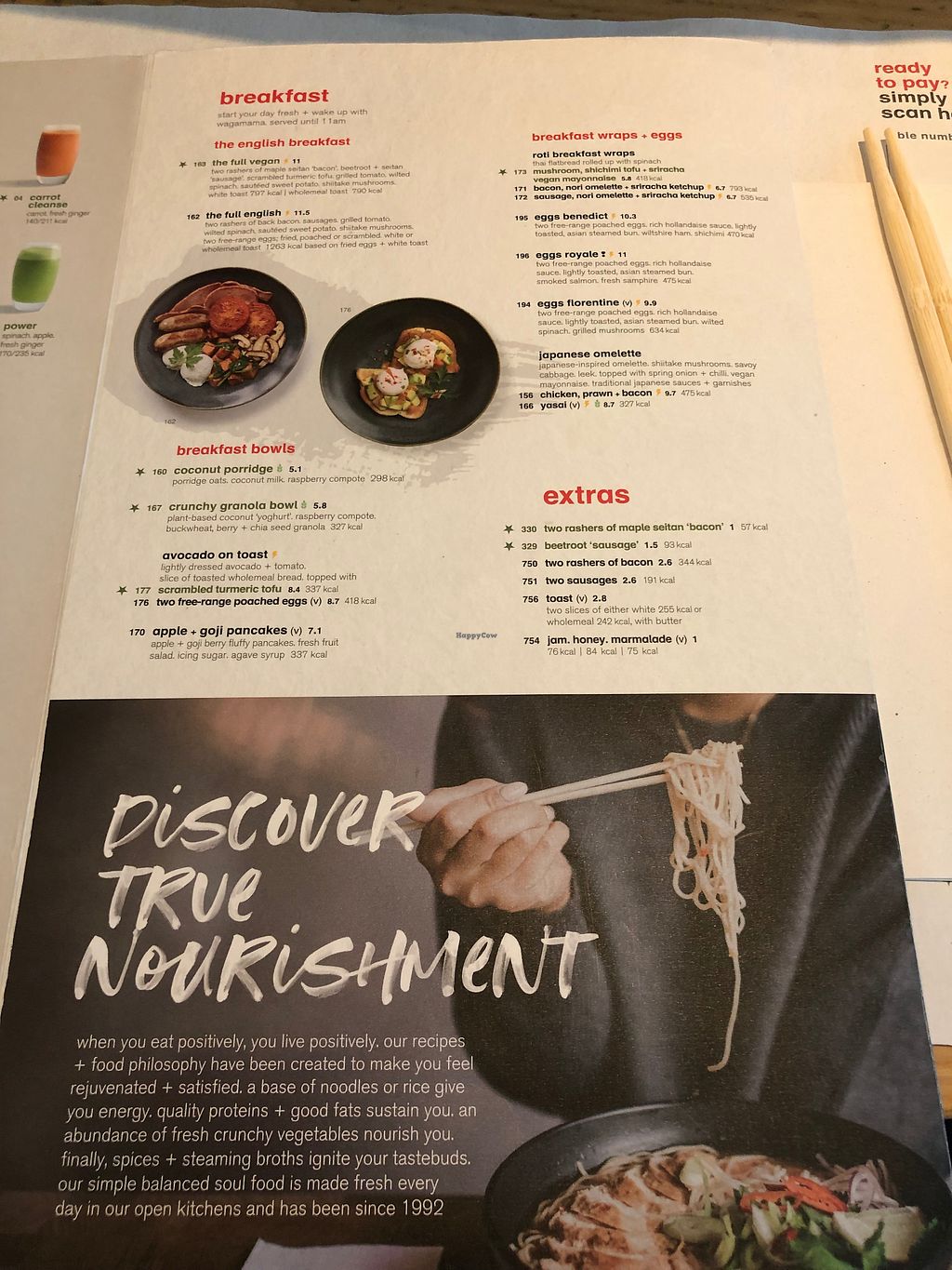 A good choice of options here for vegans. We were here (extremely) early in the morning so were limited to the breakfast menu, which had lots of tasty options, and free green tea!