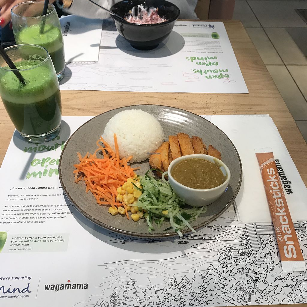 I had a great experience at Wagamama. I did not wait long for a table or my food. The staff was very kind and helpful. There were multiple clearly marked vegan options to choose from on the menu. The serving size for the sweet potato curry was very generous and it was very flavorful. The mushroom bao buns were excellent.