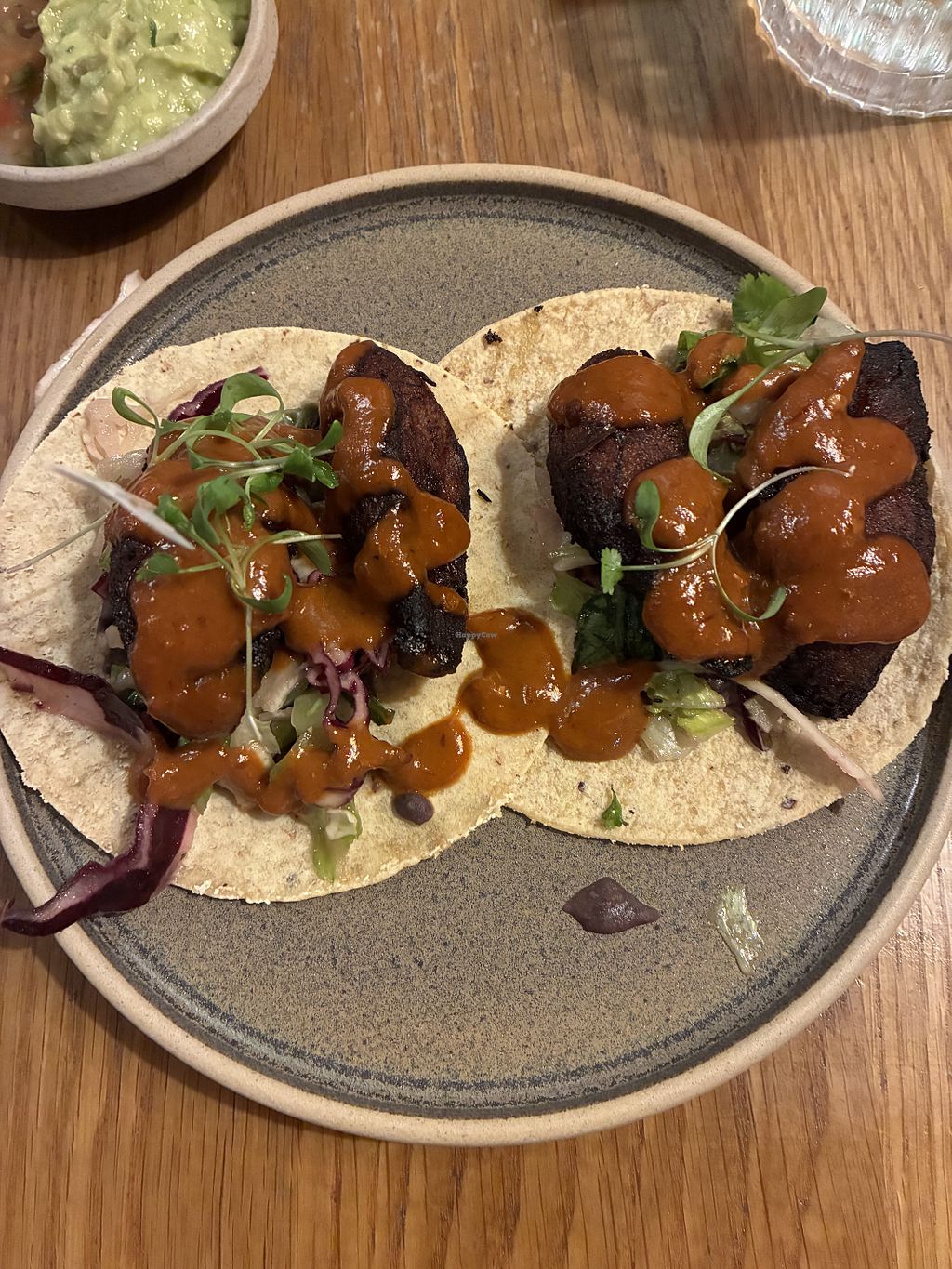Had the guacamole and plantain tacos. Guacamole super fresh. Would love more coriander in there but still good. Plantain tacos were surprisingly good for thinking it would taste like banana! It didn’t. Very sticky / crispy on the outside and soft like sweet potato on the inside.