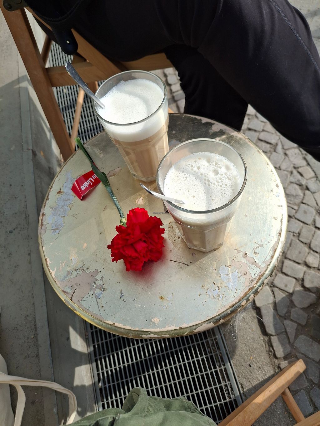 Vegan chocolate croissant, bagel with homemade seitan and coffee with …