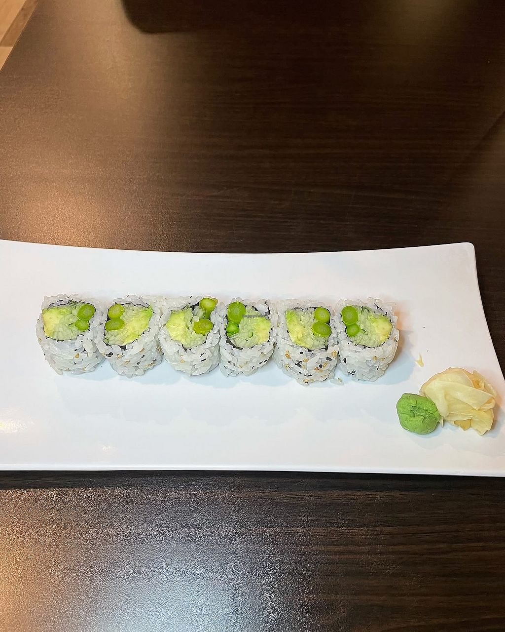 Serves meat, vegan options available. Japanese restaurant with vegan choices. Example offerings include hibachi vegetables, vegetable sushi rolls, edamame, avocado salad and more. Open Mon-Thu 11:00am-9:30pm, Fri-Sat 11:00am-10:30pm, Sun 11:00am-9:30pm.