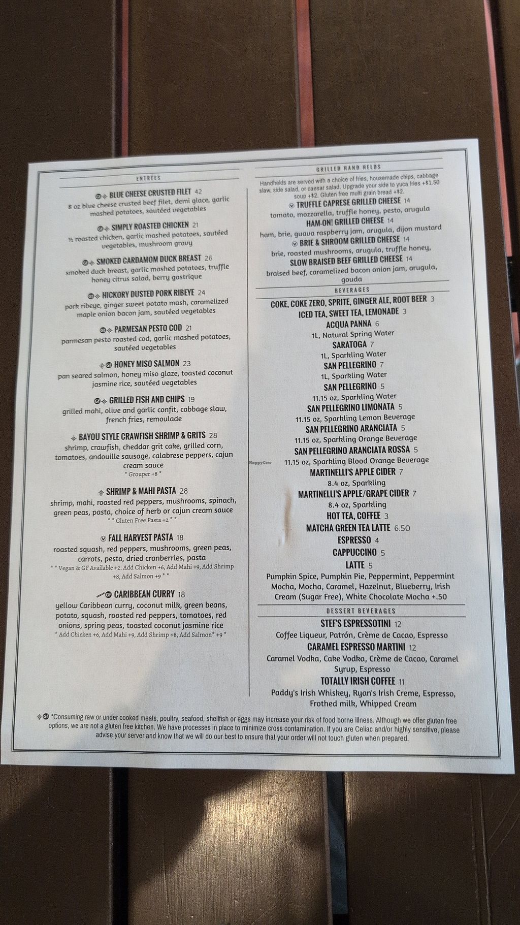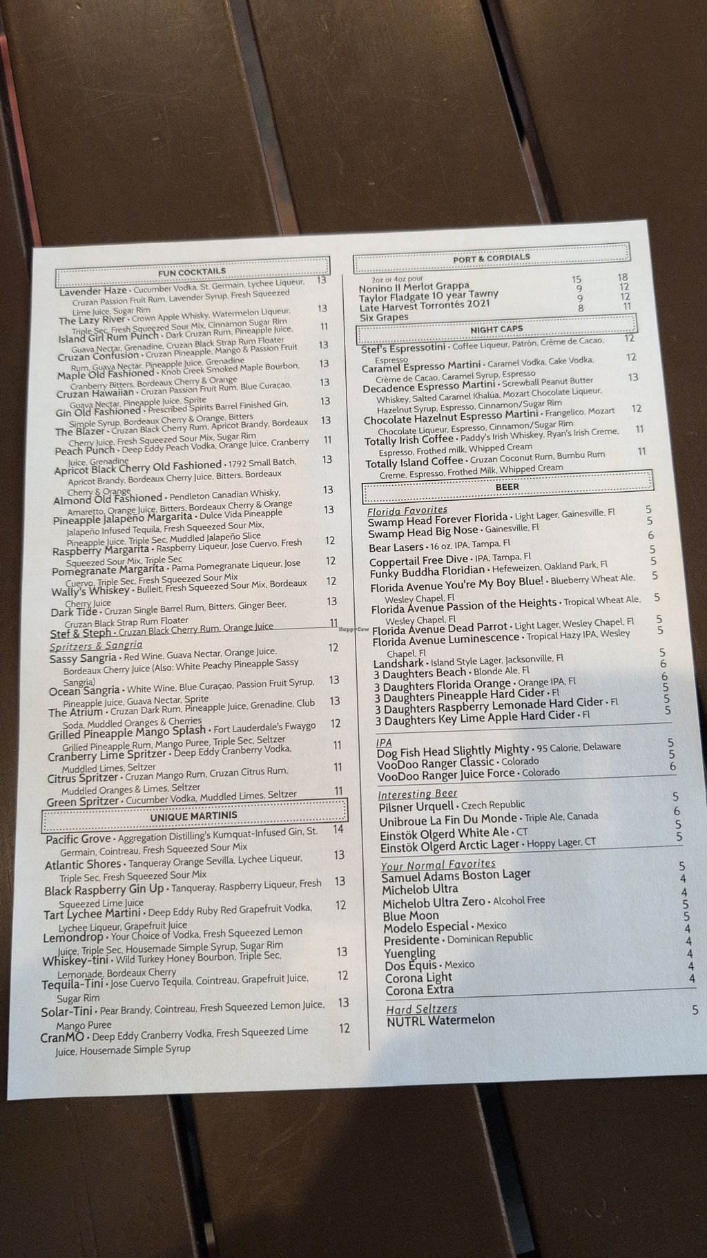 Drink menu