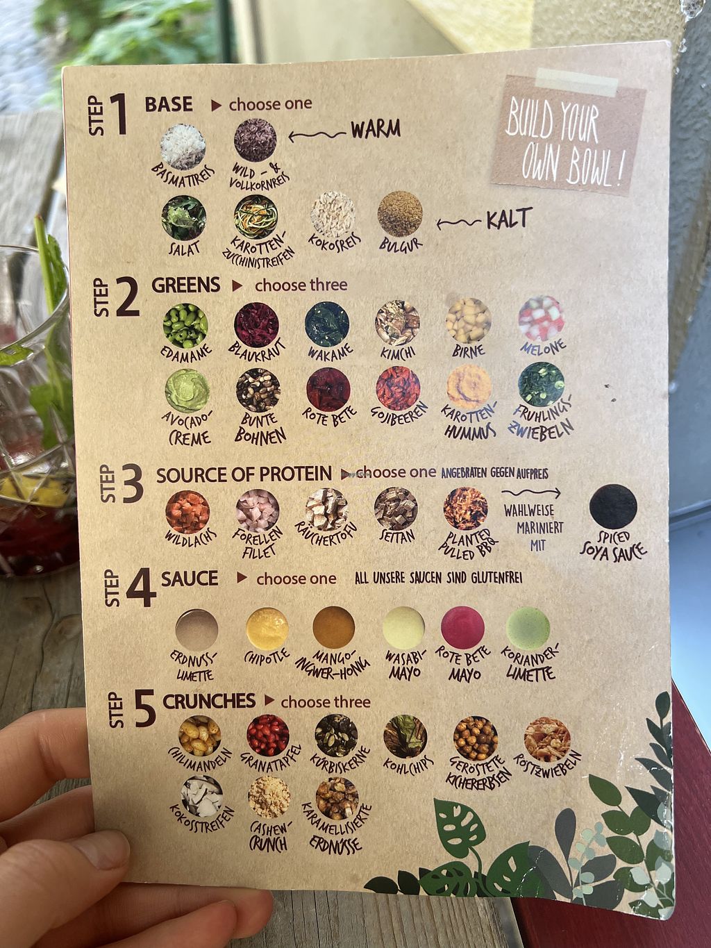 Ich mag das Restaurant sehr gerne. Ich habe mir oft im Sommer Bowls für unterwegs abgeholt, aber auch schon ein paar Mal vor Ort gegessen. Die Auswahl an Möglichkeiten für die eigene Bowl sind super. Das Restaurant ist sehr schön gestaltet und die Bedienungen sind sehr freundlich. Werde auch in diesem Jahr noch oft hingehen.