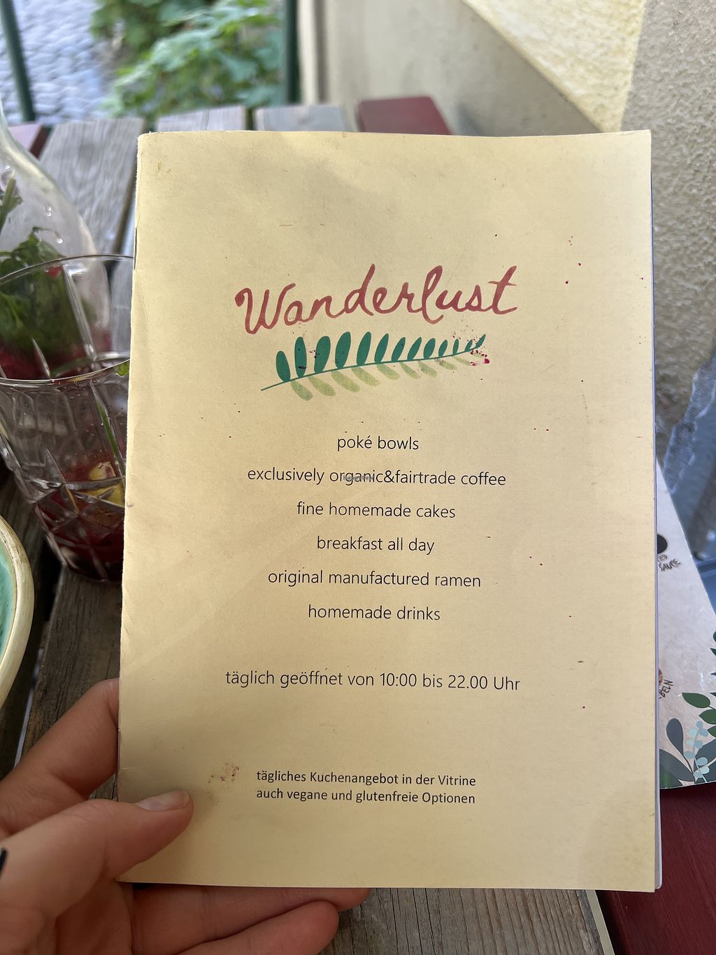 Super delicious breakfast and dinner at Wanderlust in Regensburg/Germany. Everything can be made vegan, and there are many gluten free options. Lovely, rustic restaurant with some outdoor seating and very friendly service. Highly recommend!
