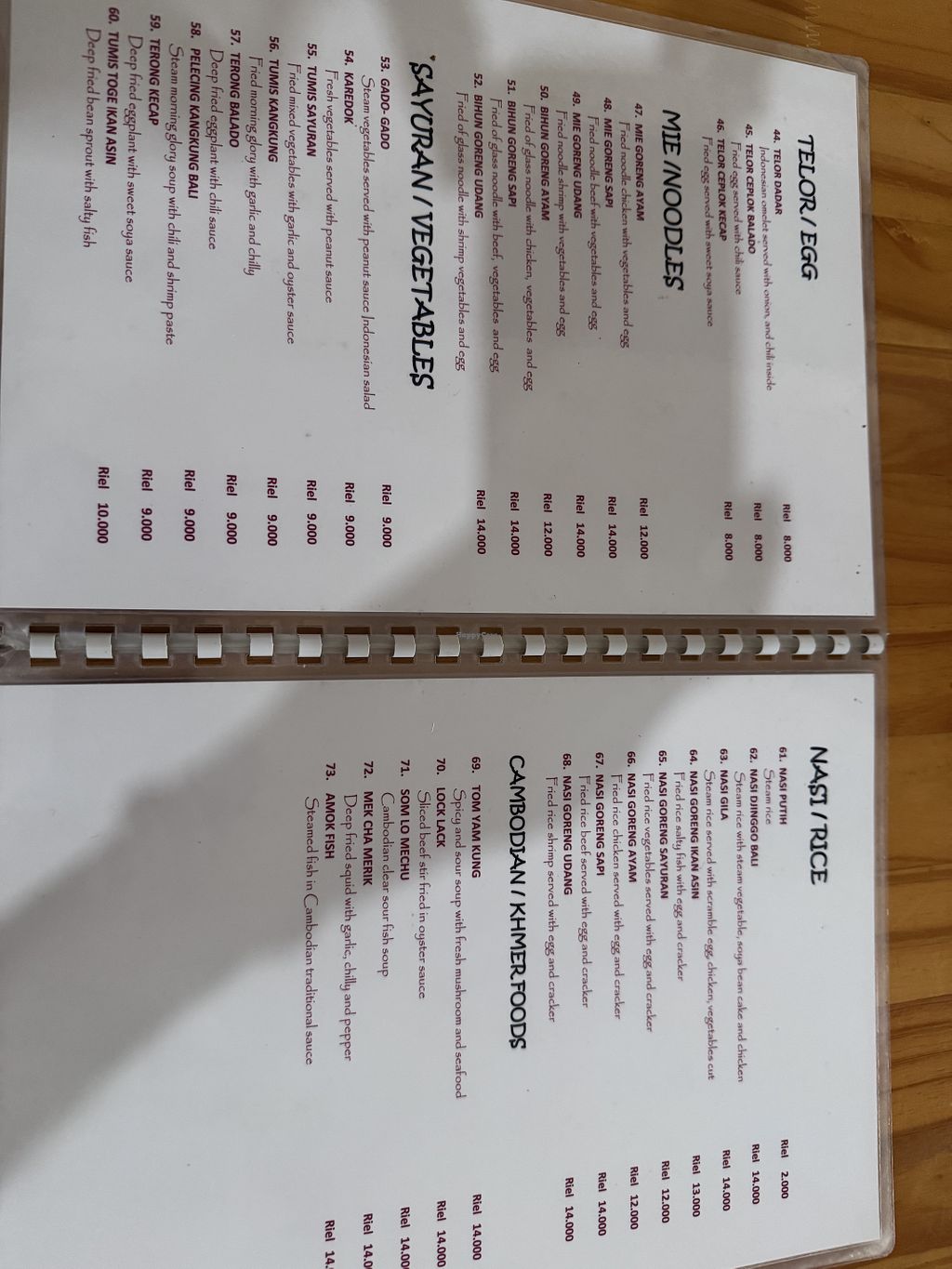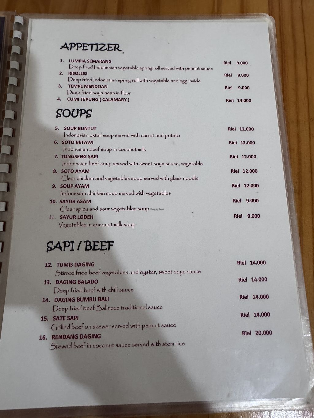 They have a lot of Vegan and Vegetarian options. Owner is super friendly and speaks good English. Most dishes are 9000R which is about 2.2 US$. One of the best places I had food on this trip in Cambodia