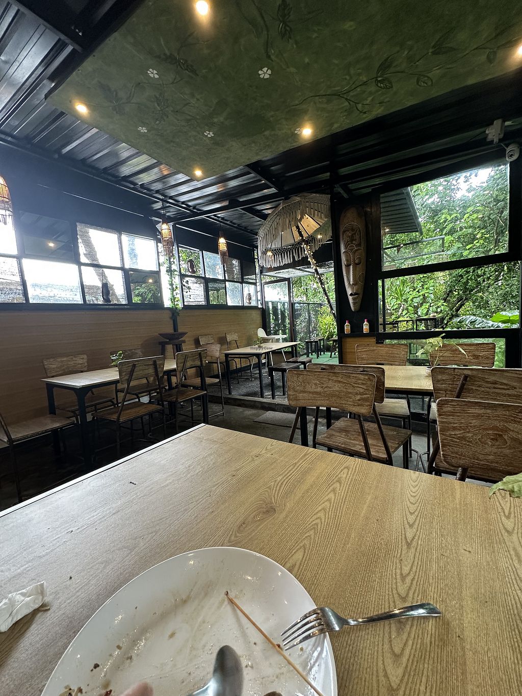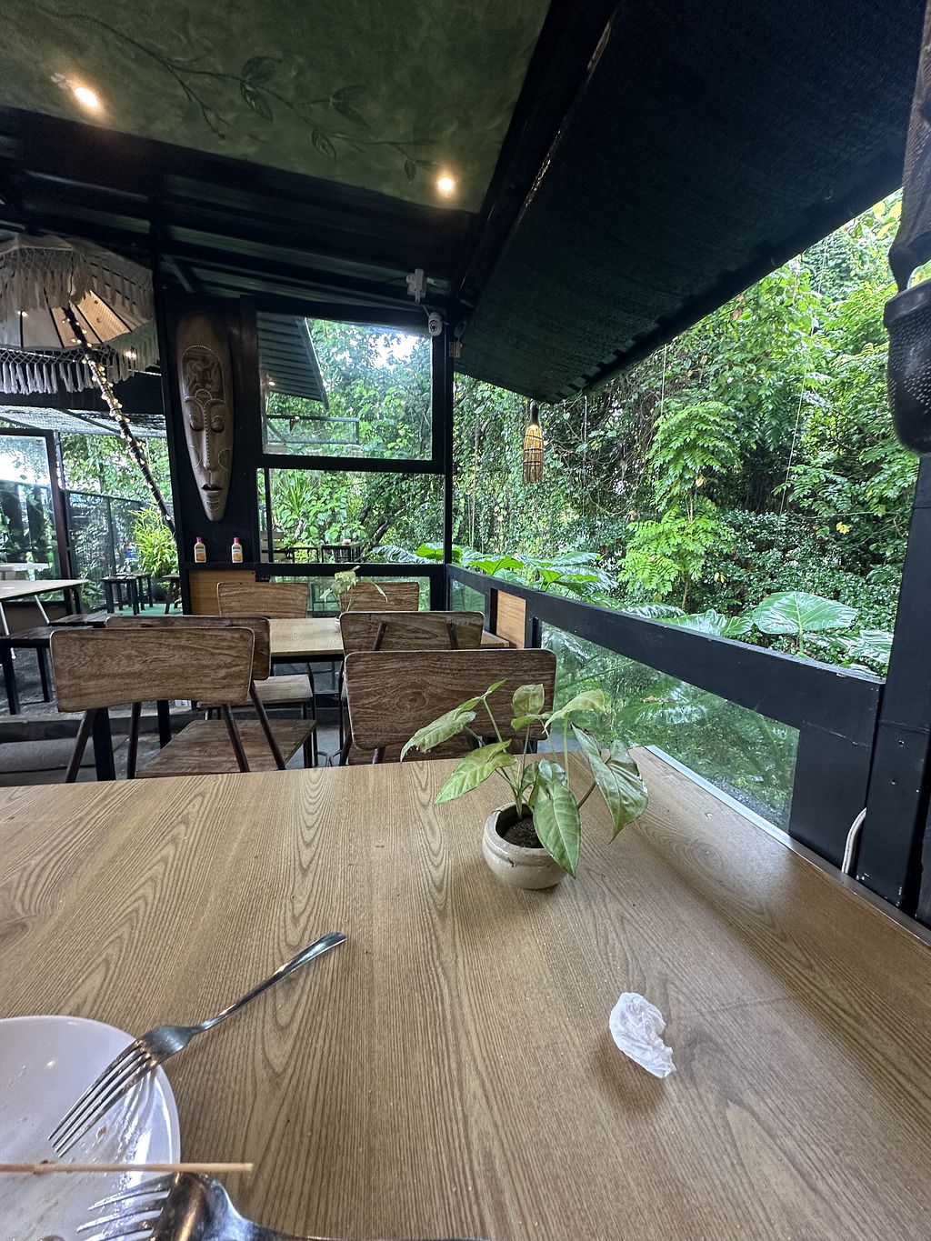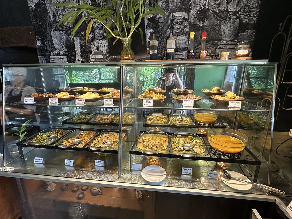 Buffet style vegan restaurant with amazing jungle view. Good food, they had clear veg broth and different styles tempeh, cakes, deserts, their own kombucha and coffee. The toilet is squatting, but very clean and with jungle view 😍