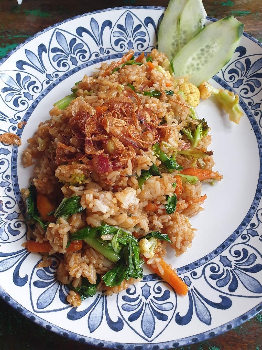 Small warung, classic Indonesian dishes available in vegetarian versions (mie/nasi goreng, gado gado, cap cay, fried tempeh/tofu, etc.). Limited menu, but cheap!