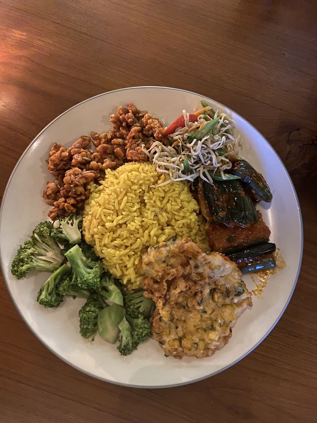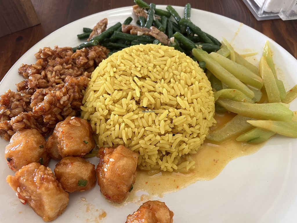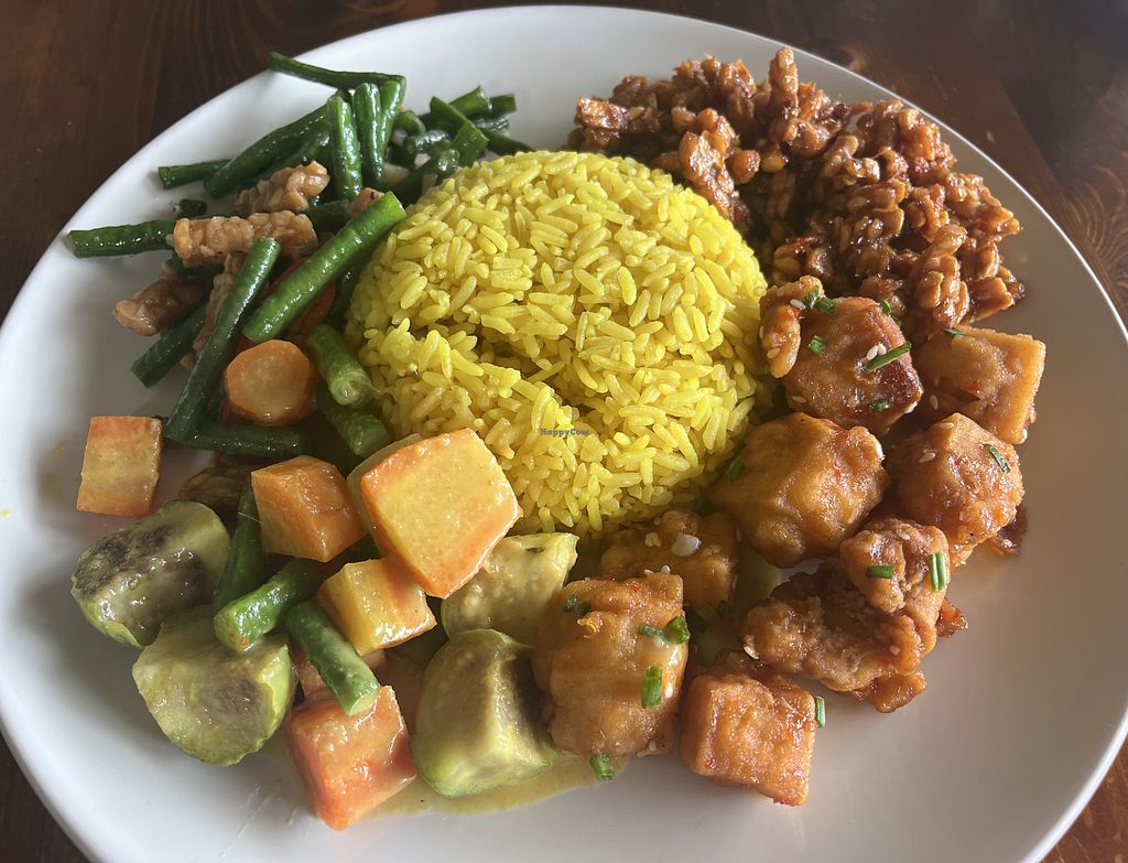 My meal! Potatoes, Tempe, veg, pumpkin curry and chilli tofu. 31,000 (…
