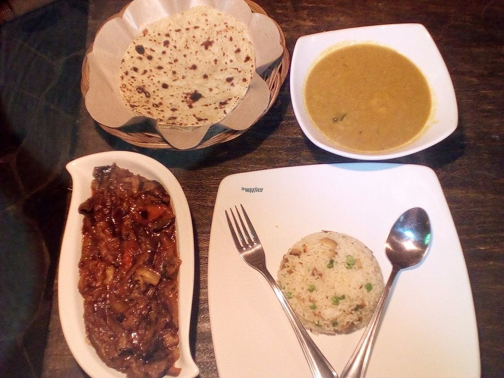 Loved this place, the owner told us everything could be made vegan and freshly cooked (also written on the menu). We took one dhal, one eggpant dish and peas one. We also chose chapatis : a must! Everything was good,