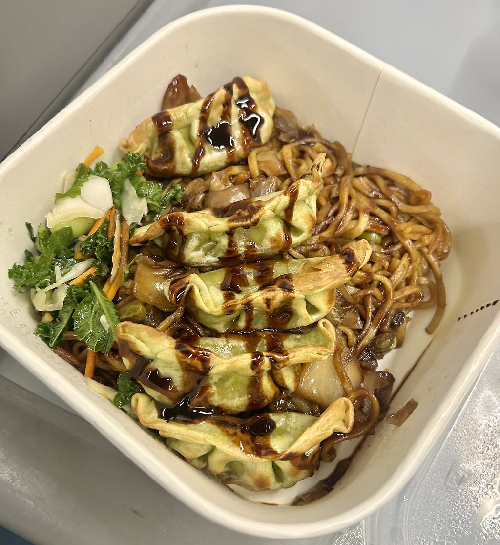 Lots to choose from. The sushi is always good and fresh. There is seating outside but maybe best for takeout. Quick and easy.