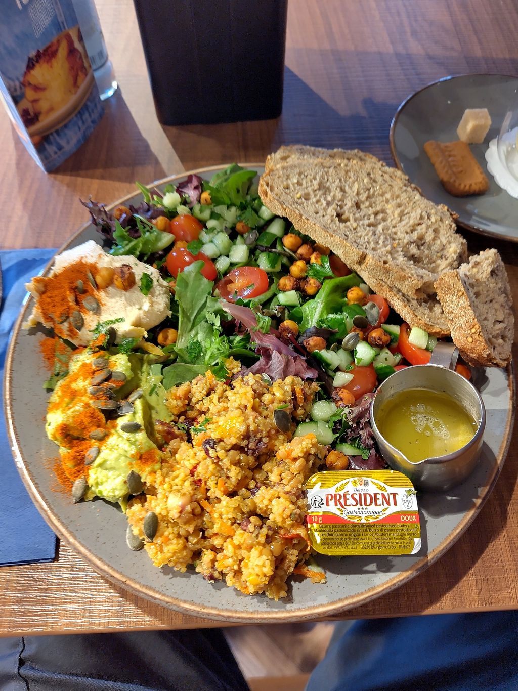 We stopped for a quick lunch during a day trip to Bruges, and were delighted to find a place in the square with lovely outdoor seating, friendly staff, and clearly marked vegan options.