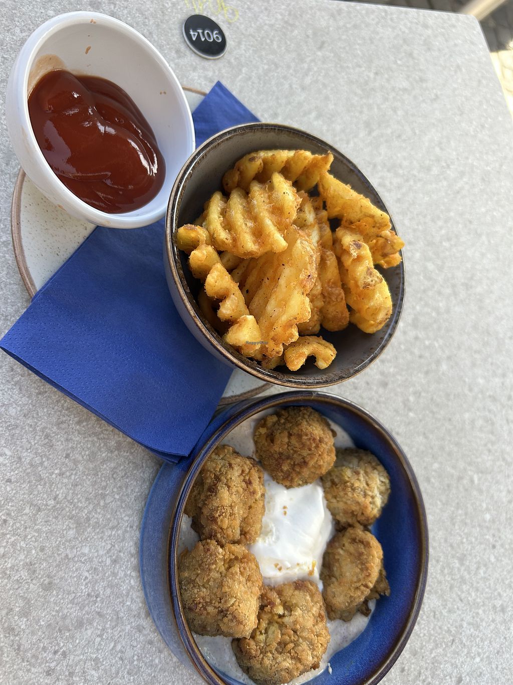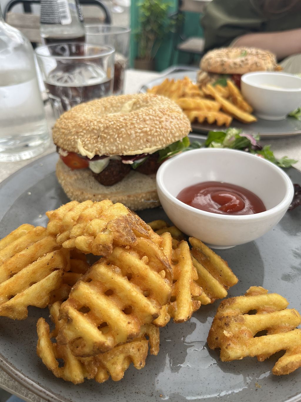 Note: the 'waffle fries' are not labelled as vegan on the me u, although they are part of the viva las vega bagel. I was assured they are vegan and baked in the same oil as the falafels - plantbased oil.