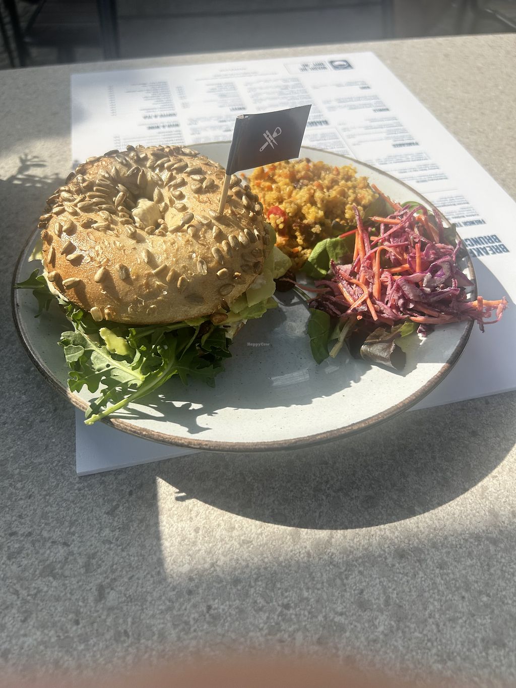 Fast food but tasty, tried the cheese bites instead of a bagel. Yum! On the irl menu they are labelled as vegan but online they aren't, after checking with the waitress and even sending an e-mail I got reassured both times that they are plant based🥰