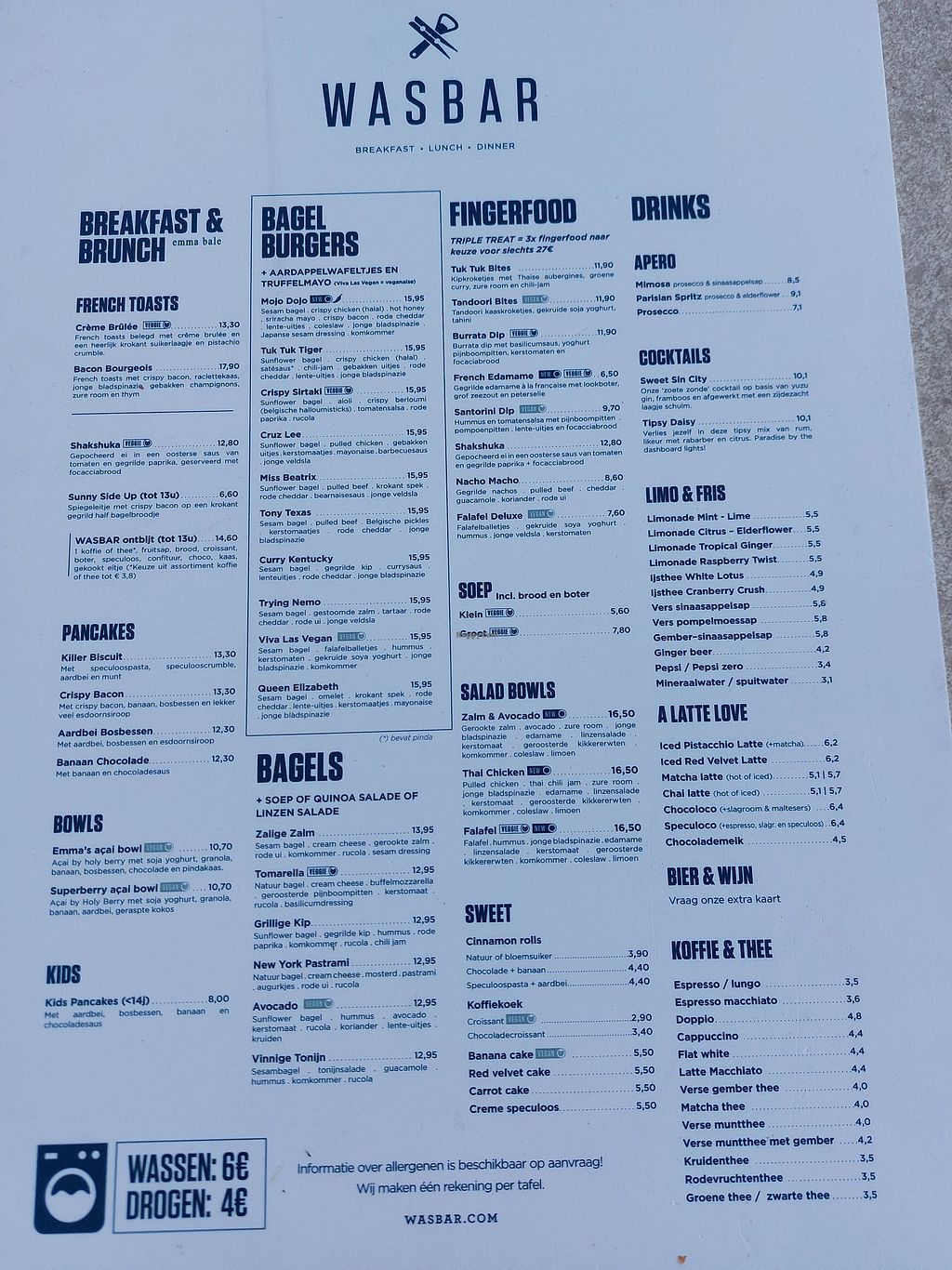 Wasbar is a chain with several locations in BE. As the name says, you can also do your laundry here (washing machines in 2nd floor).