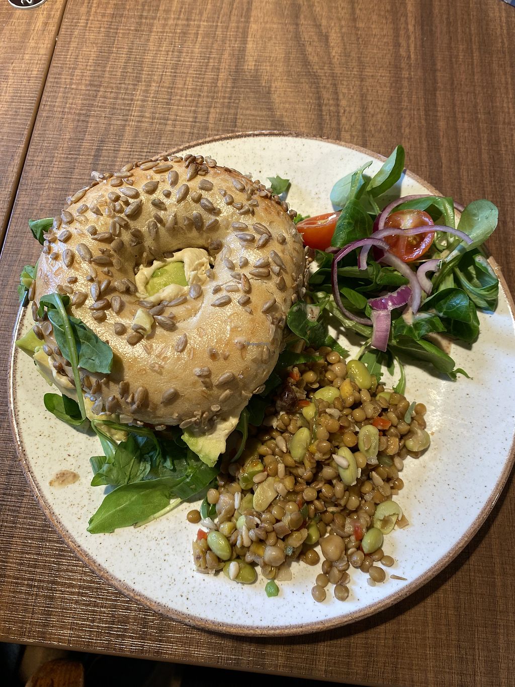 I came here after trying to get into multiple places that were all booked out for the day. I had the sesame avocado bagel sandwich. It was okay, but could use some pickled onions or something. I’m just glad I found somewhere to eat!