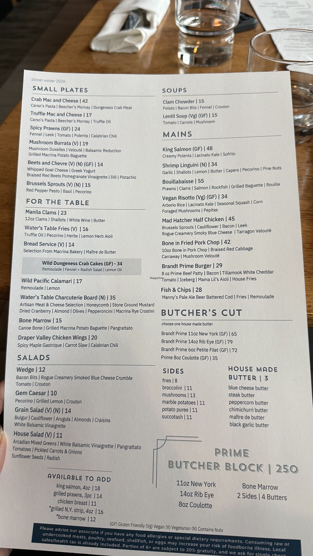 Had dinner at Waters Table restaurant yesterday, there were a couple of vegan appetizers and the staff were open to making adjustments to some dishes when possible. I had the special salad with no cheese, and the Brussel sprouts with no cheese. I really recommend the mint chocolate cake it was so so good!!!
