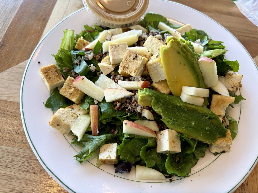The owner is SO FRIENDLY. All the staff is really friendly and professional. I've had a few vegan foods from the deli. All were amazing. I had a wrap, quinoa cold salad, and you have to try one of their power salads with the lemon herb dressing! The dressing is so good it always goes so fast! They have a beautiful outdoor eating area as well.