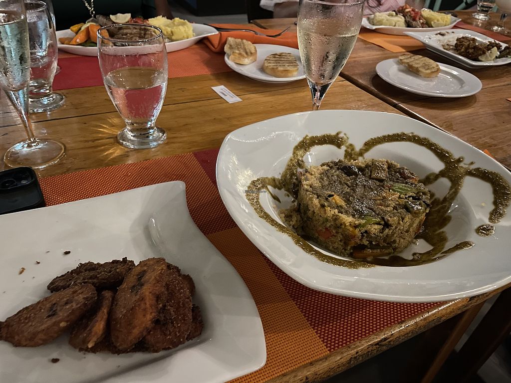 The vegan option I went for was the quinoa cakes and the cinnamon/sugar crusted plantains. So delicious and I was so happy to enjoy this meal with my non-vegan friends.
