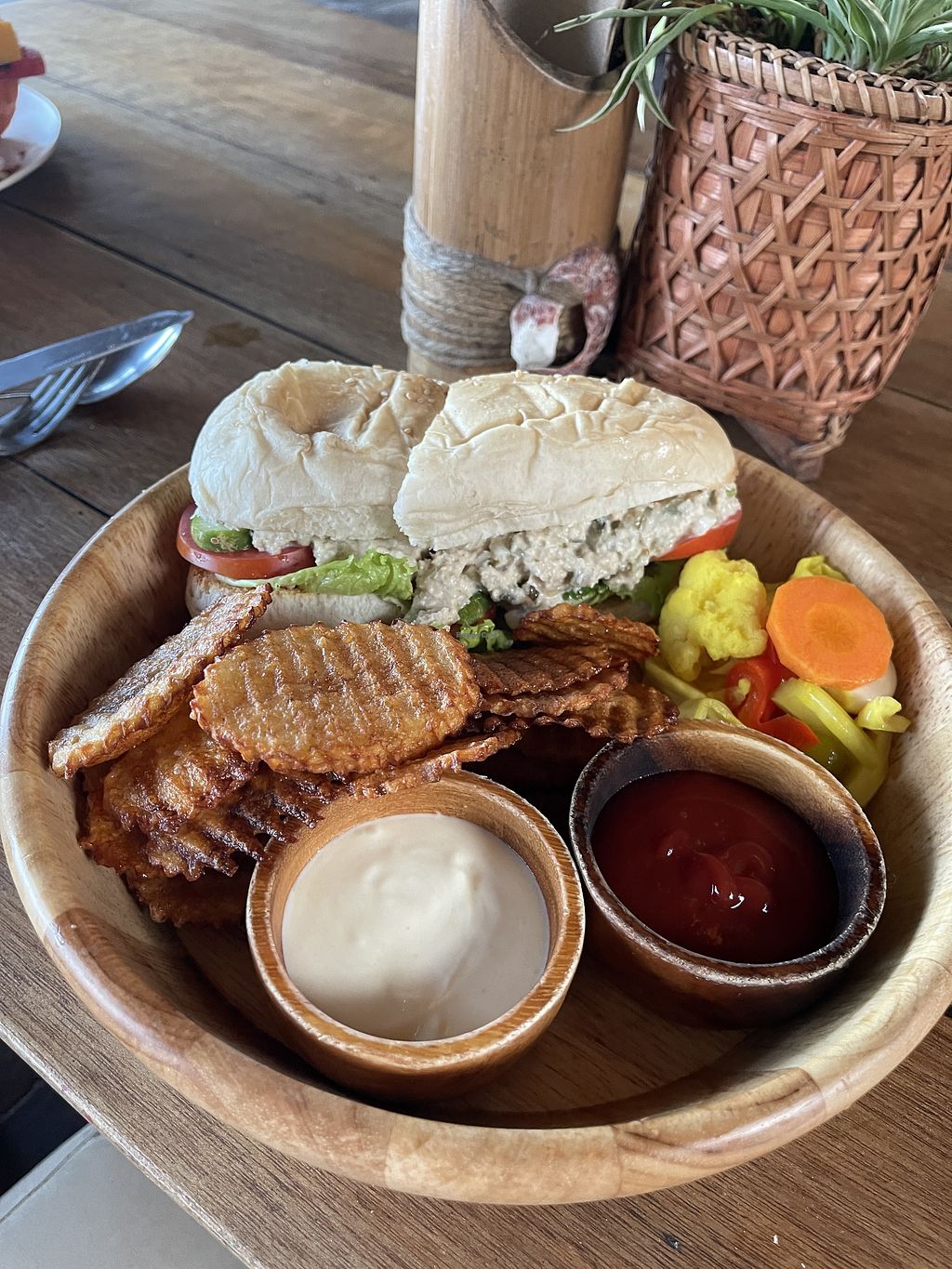 We had quite a long and a bit complicated travel from the other side of the Island to the Restaurant but it was worth it! Such a nice location, 100 % vegan, many different options and everything was tasty!