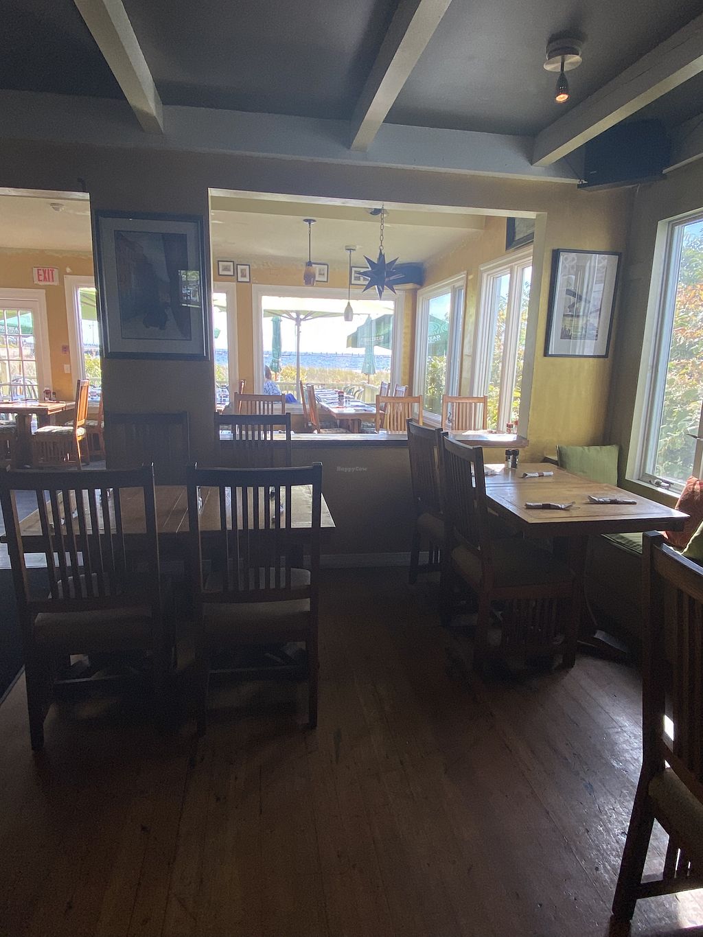 This is a nice restaurant, but if you have only three vegan items on the menu, you should make a special effort to always have all three on hand. The only reason we chose it was because the sweet potato and black bean chili sounded really good. It wasn't until we were seated, had our drinks, and were well ensconced that we found out it was unavailable. By then it would have been a huge inconvenience to find another suitable restaurant that actually had an open table. The other vegan items are beet and lentil veggie burger and Beyond Burger, which I wasn't interested in, and a couple of veg items that are mainly dairy, which I don't do. As a pescatarian I had the seaside saffron risotto with shrimp and mussels, which was good. Spouse had the beet and lentil burger and enjoyed it. We ordered an appetizer but our server forgot it, one of several mistakes. Poor thing must have been new, and was mortified and apologetic. It was just as well — the entree portions were generous and completely satisfying. Oh and by the way, the "seaside" outdoor seating area, while pleasant, is next to a 50-foot-wide sandplain meadow backed by 200 feet of sand; the sea was well out of sight.