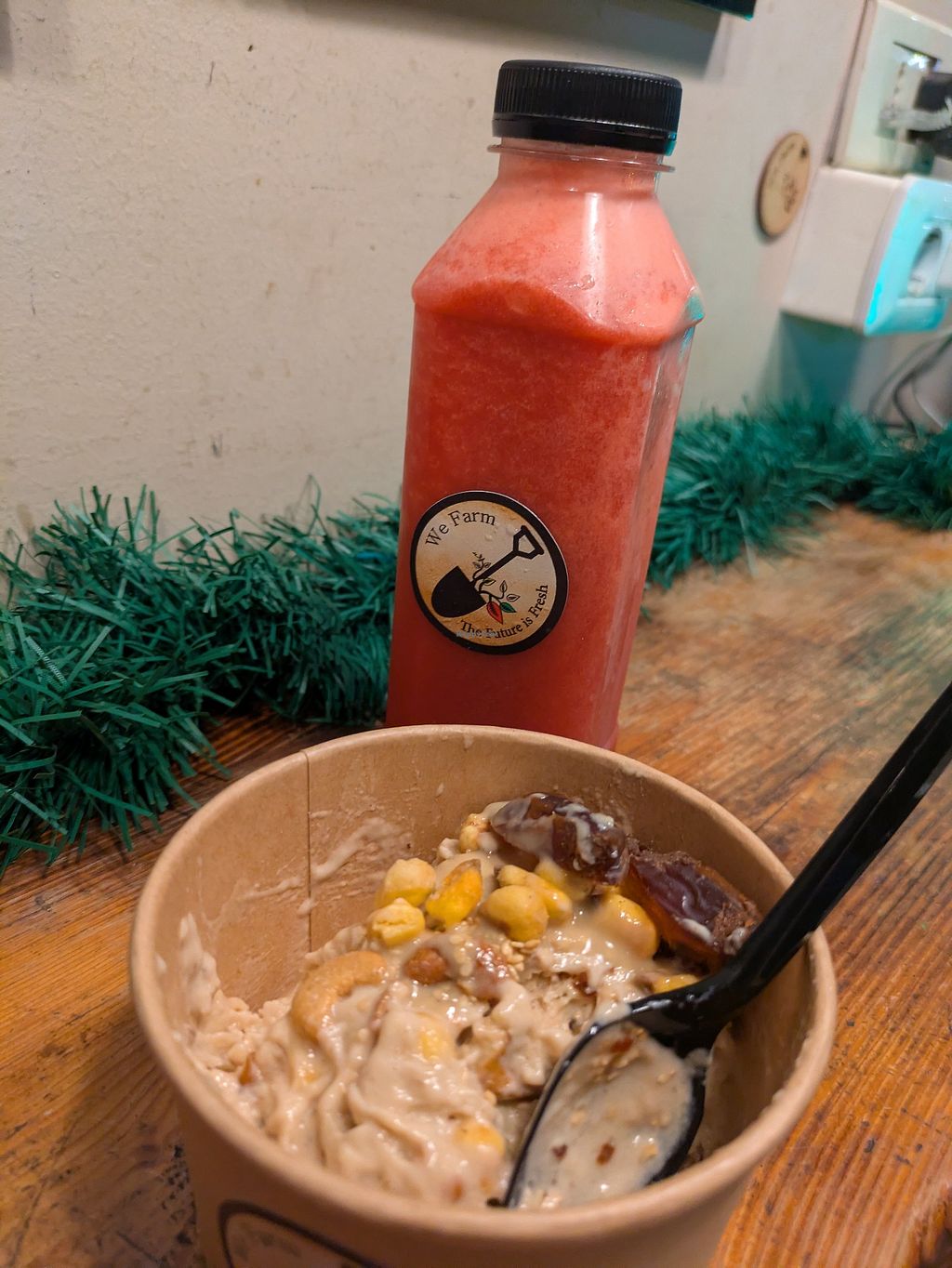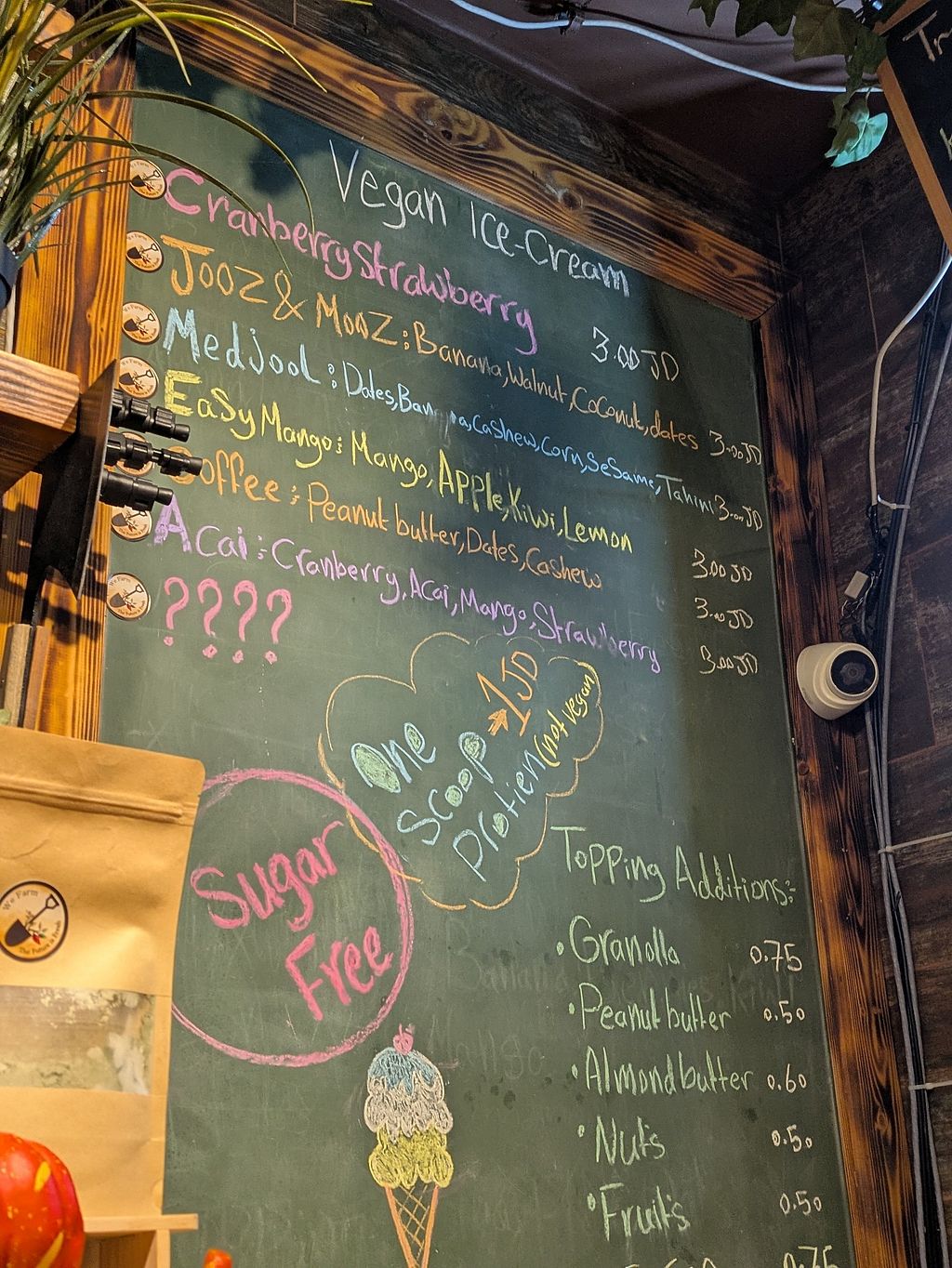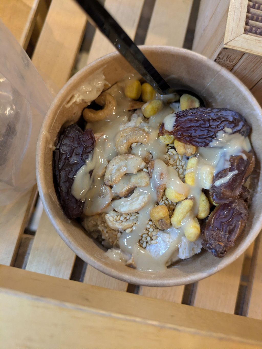 Medjool ice cream with tahini, sesame, cashew and corn pieces
