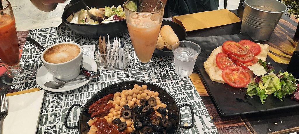 Serves meat, vegan options available. Bar offering some vegan options, such as sandwiches and salads that can be made vegan by omitting cheese, chickpea salad, and cappuccino with soy milk. Also has fresh juices. May be able to prepare vegan pizza by omitting cheese, ask. Open Mon-Thu 08:00-19:00, Fri-Sun 08:00-00:00.