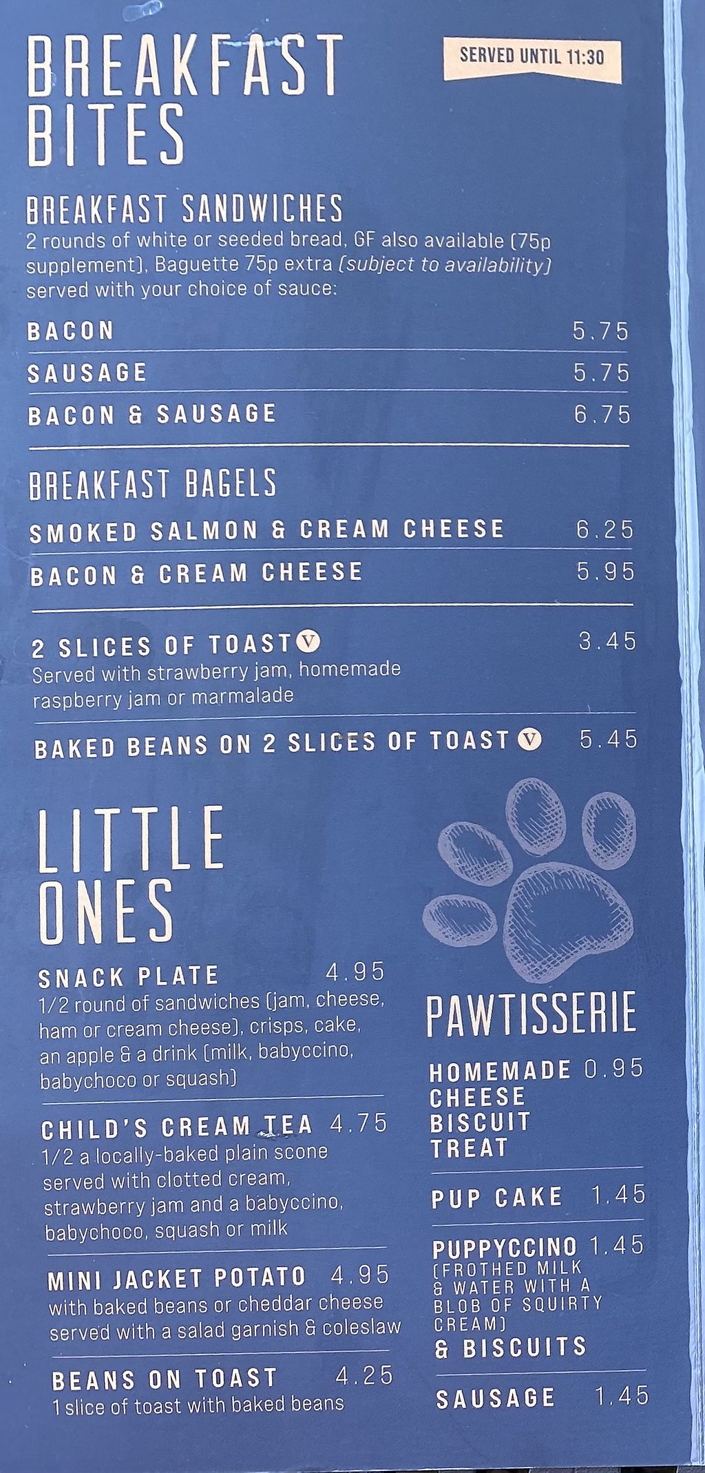 Breakfast, child and dog menu