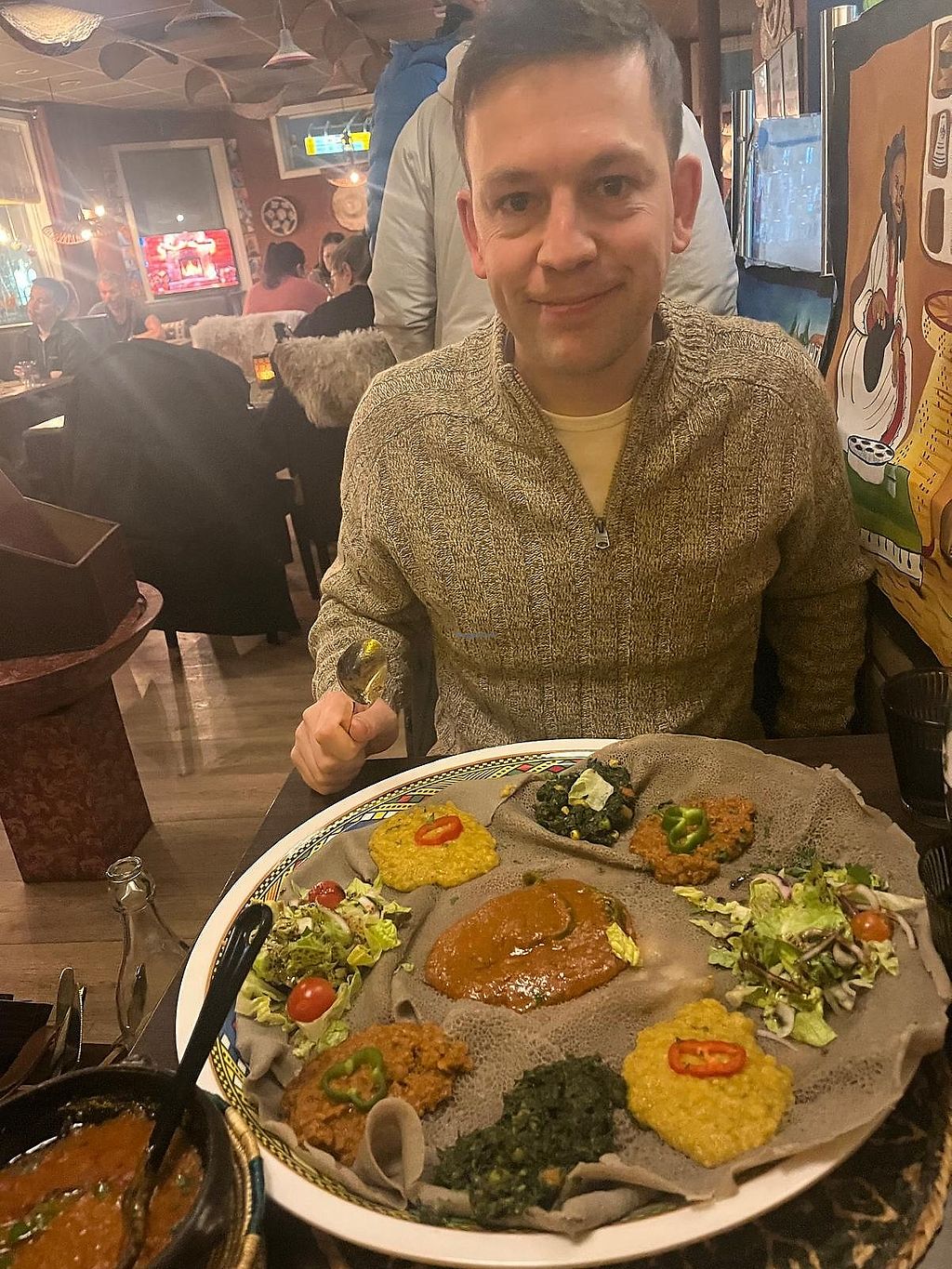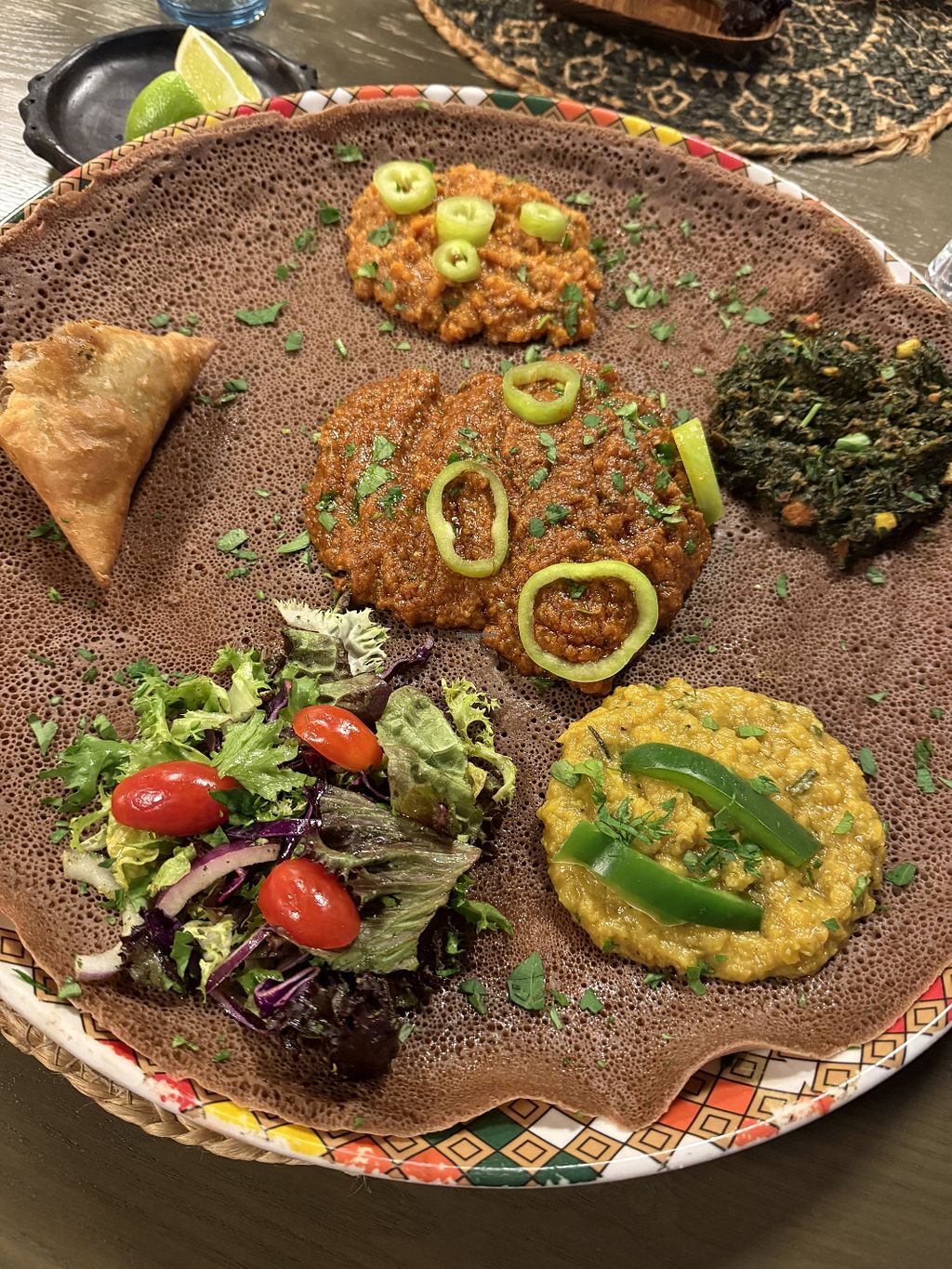 Tim Timo, Alicha Tim Timo, Spinach and injera . Did not ask if vegan b…