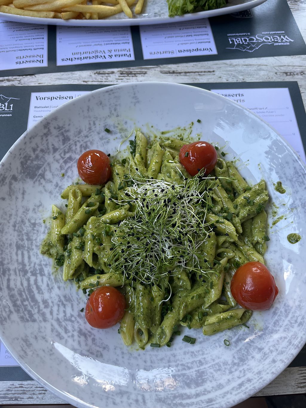 Es gibt ein paar vegane Gerichte zur Auswahl, die ganz gut sind.