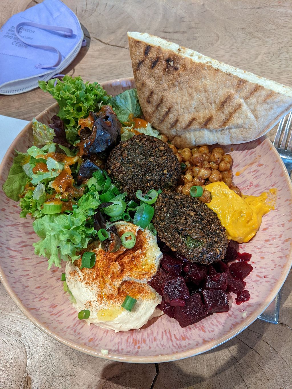 Not far away from Potsdamer platz, a very quiet place with few really good vegan options for lunch.