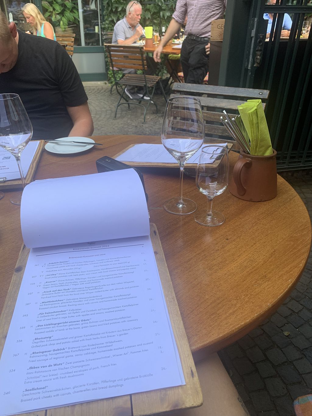 I have choosen a (kopf salat) Green salad with radishes and herbs, (yoghurt)or vinegar-oil dressing So good. Then the Loreley salad: these are the ingredients but you can easily veganize it:
