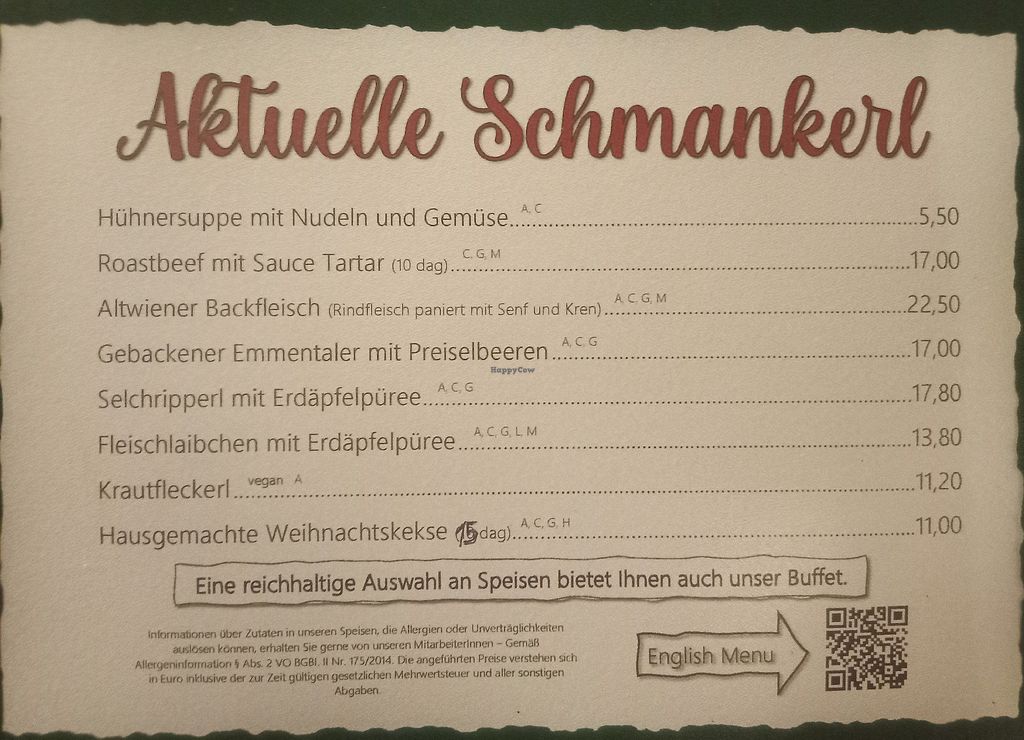 Seasonal menu