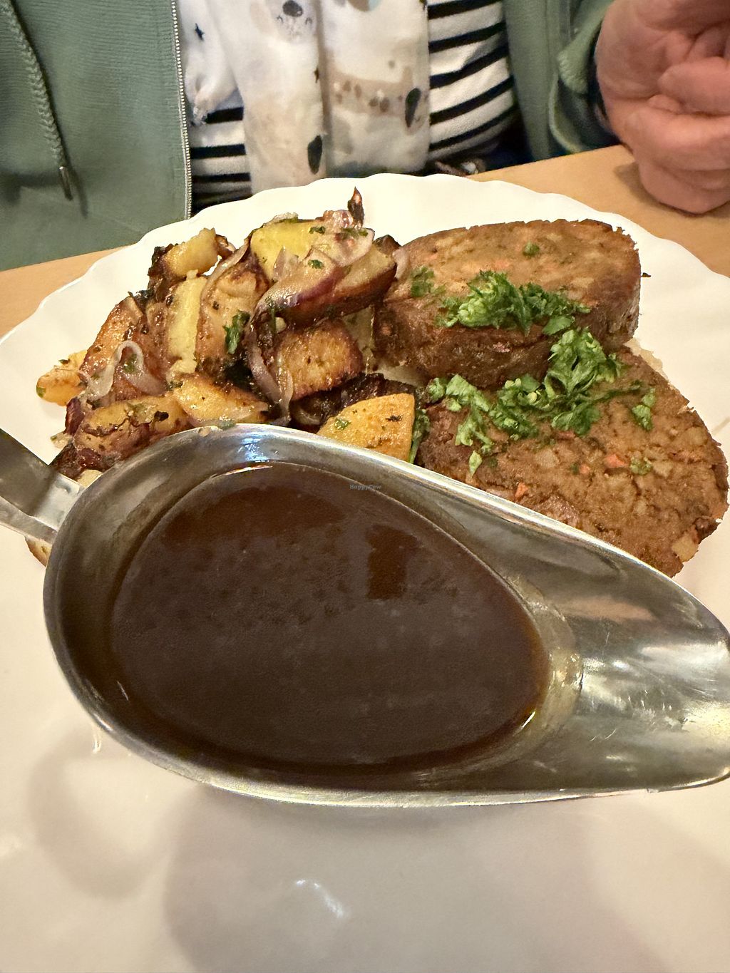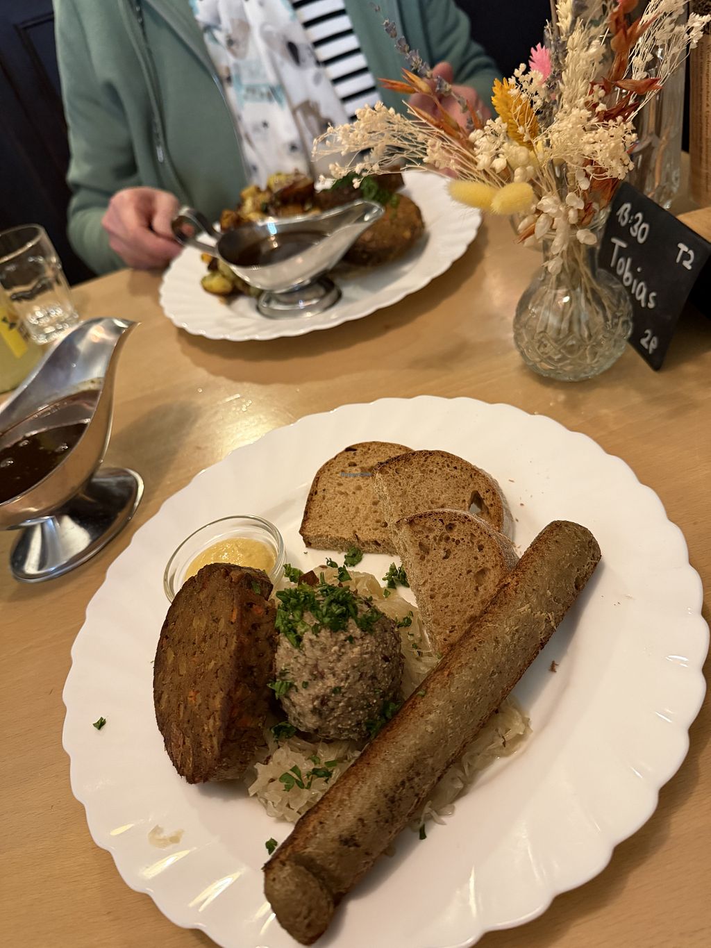 Hammer veganes Essesn. Pfälzer Küche - sieht auch aus wie die pfälzer Küche, aber alles!! Plant based und suuuuper lecker. Die Sosse war mega lecker. Die Teller der anderen sahen auch sehr gut aus. Sympathisch, junges Team dort. Auf jeden Fall wieder!!!