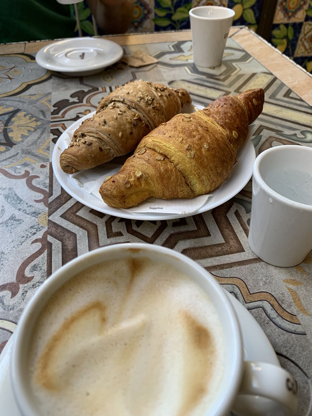Many types of vegan croissant and other biscuits! And vegan cappuccino with soya milk