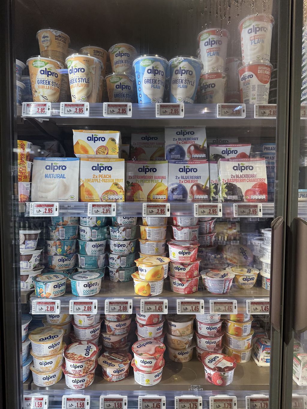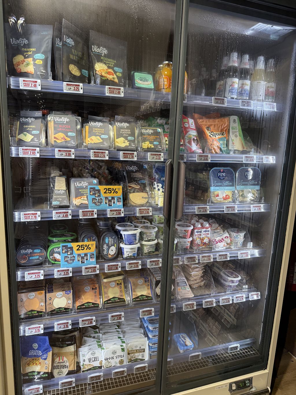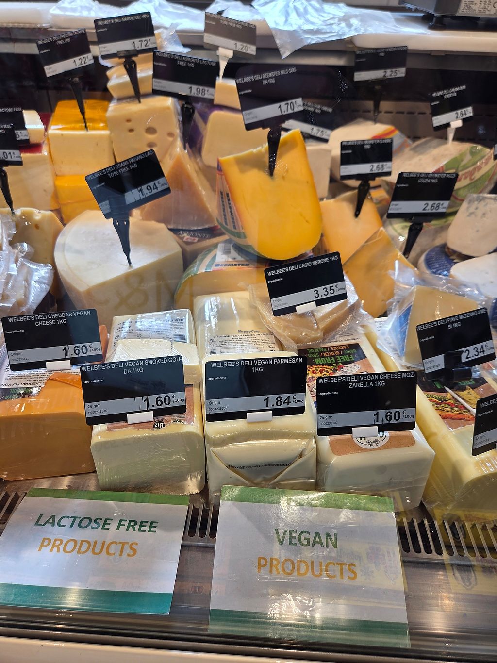 There were so many clearly labelled vegan things. I got vegan cheese from the deli counter and sliced vegan meat. Loads of alpro products too