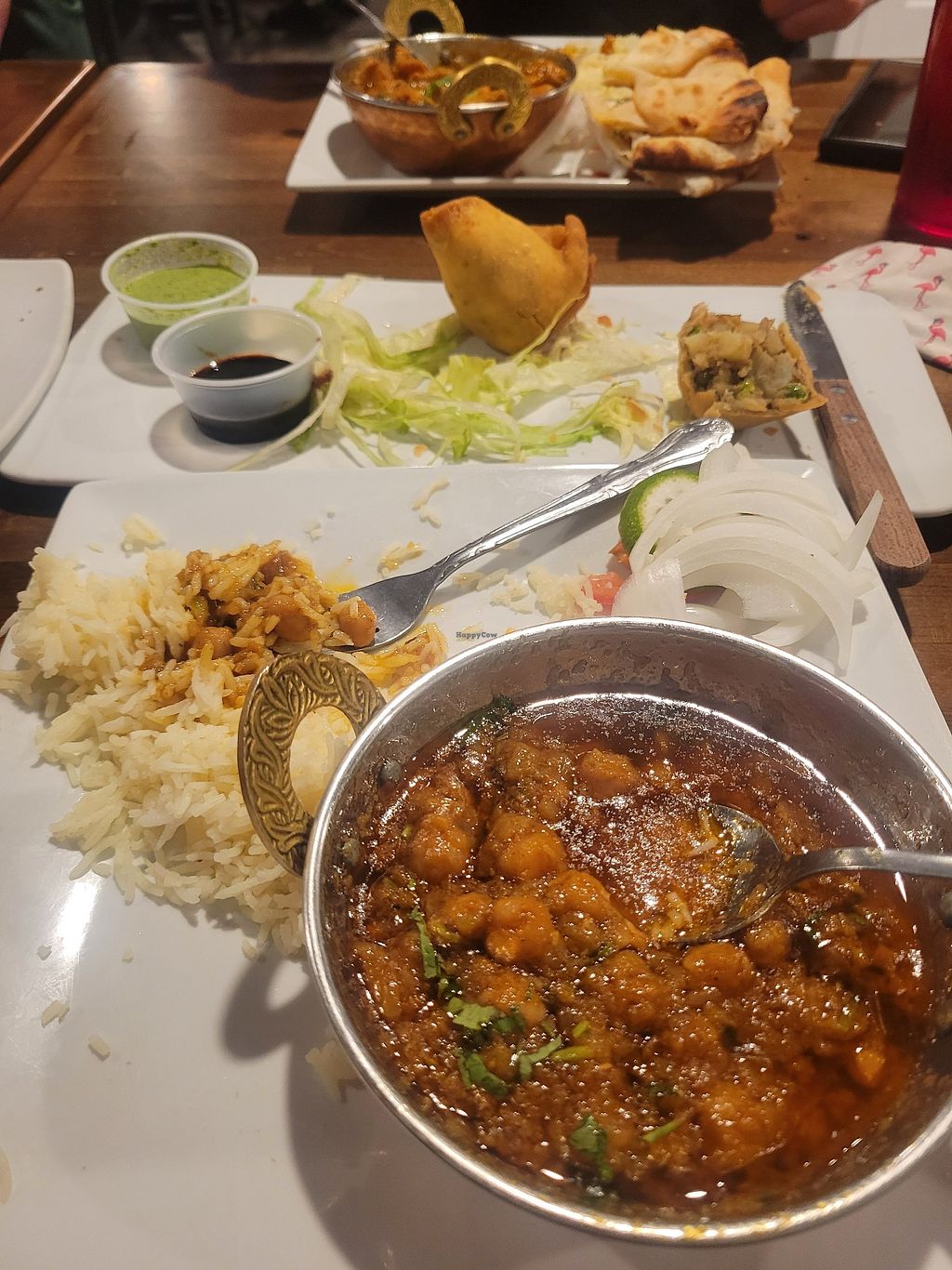 Serves meat, vegan options available. Indian restaurant offering vegan dishes such as veggie burger, chana masala, veggie noodles, daal, chole baat, and veggie samosas. Open Mon 11:00am-2:00am, Tue-Wed 11:00am-10:00pm, Thu 11:00am-1:30am, Fri 11:00am-2:00am, Sat-Sun 11:00am-3:00am.