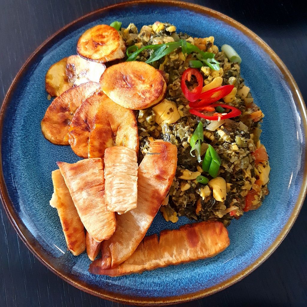Stew peas and rice Mac n veeze Breadfruit and plantain Ackee Chck…