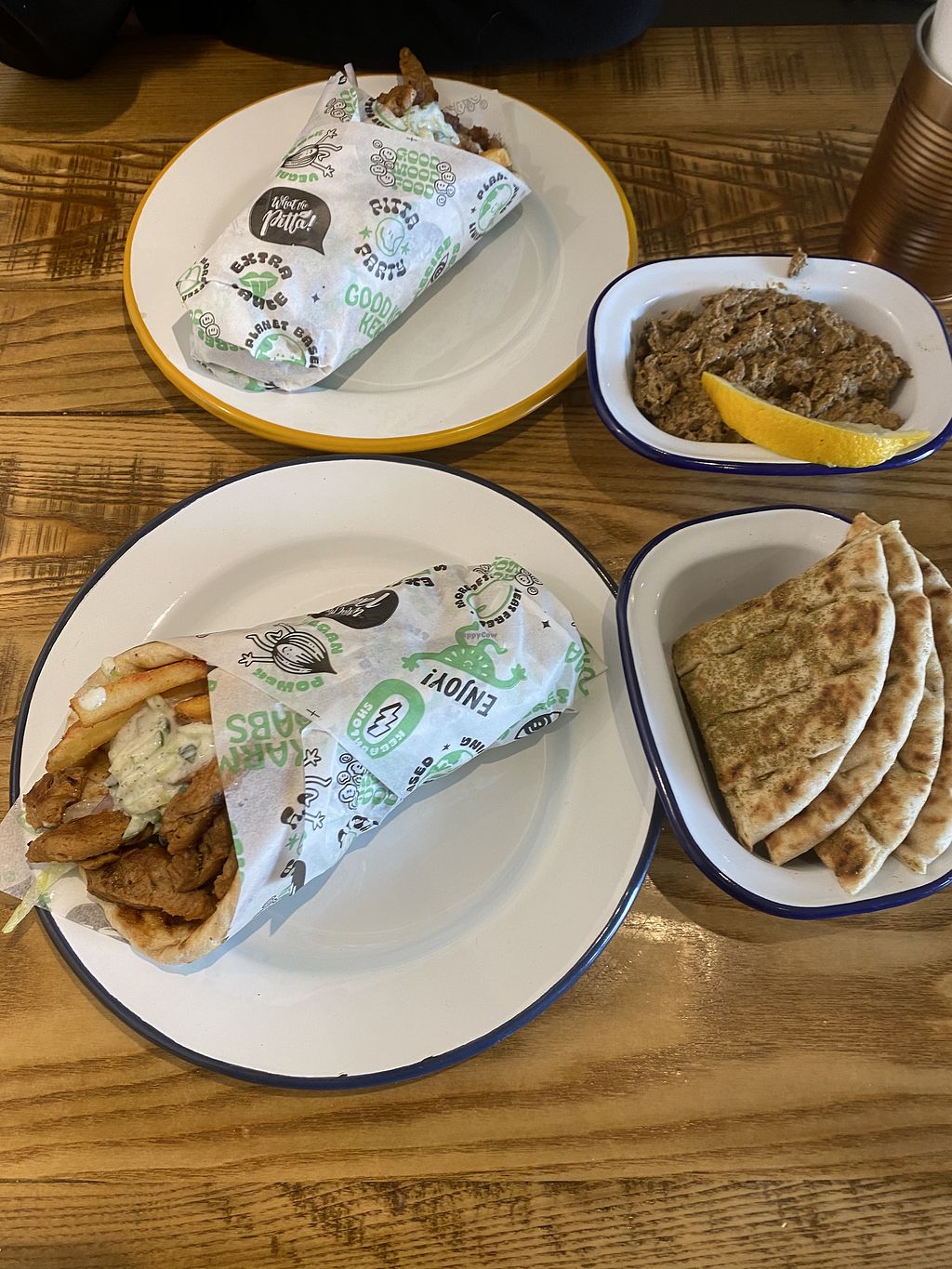 Update: returned and this time also got some baba ghanoush and pittas! 🫶🏼Was super filling though I wasn’t able to finish it!