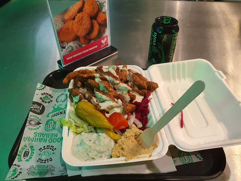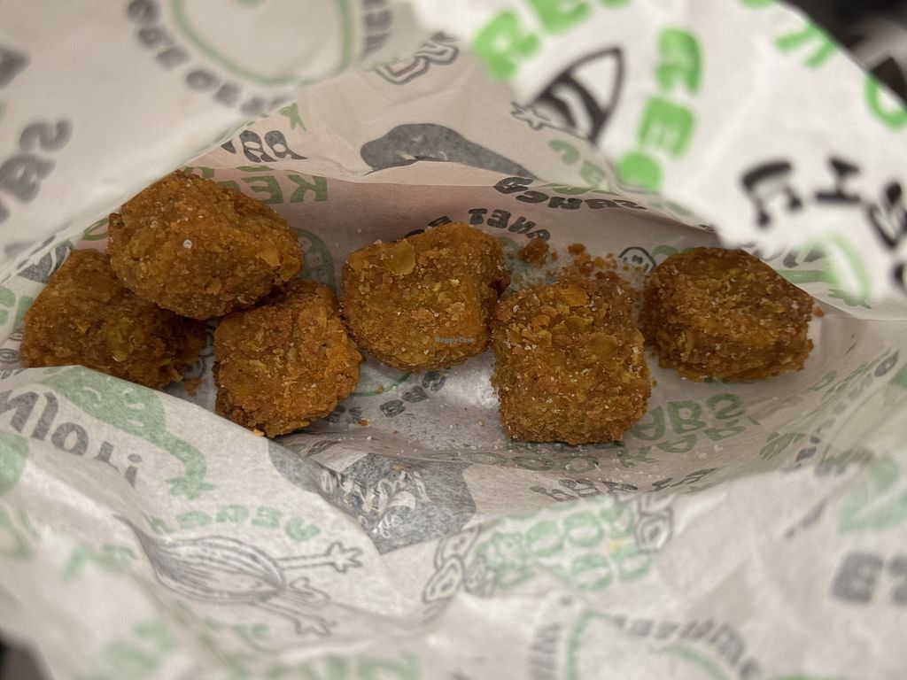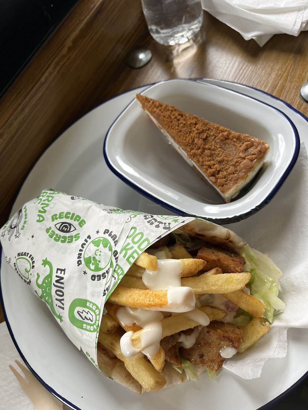 Vegan donner, nuggets and vegan cheesecake.